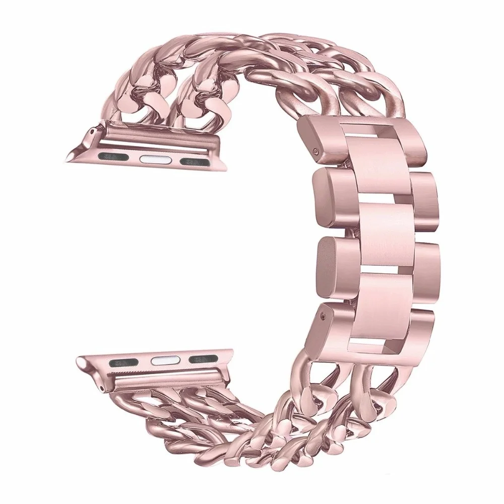 Elevate your Apple Watch with this luxurious stainless steel link band, compatible with Series 1 to 10, including models 38mm, 40mm, 41mm, 42mm, 44mm, 45mm, and 49mm. Crafted from durable 316L stainless steel, it features a sleek, polished surface and a comfortable 18cm length. Available in versatile colors—silver, black, gold, rose gold, and rose pink—this unisex band boasts a sophisticated linked design with small interlocking segments and a secure metal buckle clasp. Perfect for adding a refined touch to your daily wear, it offers a seamless blend of style, comfort, and durability, making it an ideal upgrade for your Apple Watch experience.