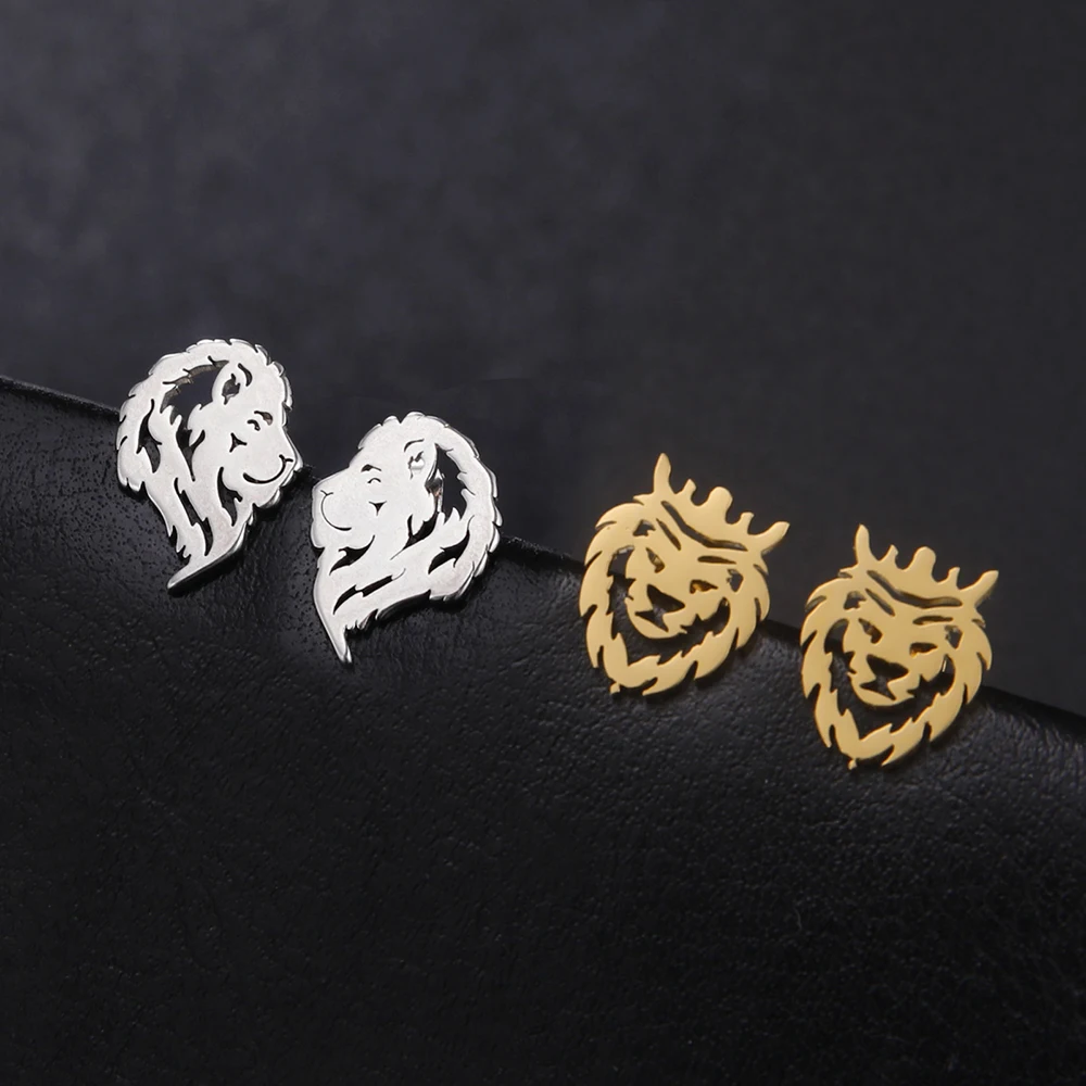 Imagine adding a bold touch to your everyday look with this modern pair of lion head stud earrings. Crafted from high-quality stainless steel, these minimalist designs feature sleek outlines of a lion’s head that evoke strength, majesty, and confidence. Whether you prefer the warm shine of gold or the cool, reflective steel finish, these earrings are perfect for anyone who wants a subtle yet striking accessory. Their hypoallergenic, nickel-free, lead-free, and cadmium-free properties ensure comfort for sensitive ears. Wear them for a casual day or a themed occasion, like gothic or punk fashion, making your style unforgettable. These unisex earrings seamlessly blend elegance with a fierce animal totem vibe, turning an everyday staple into a statement of your personality.