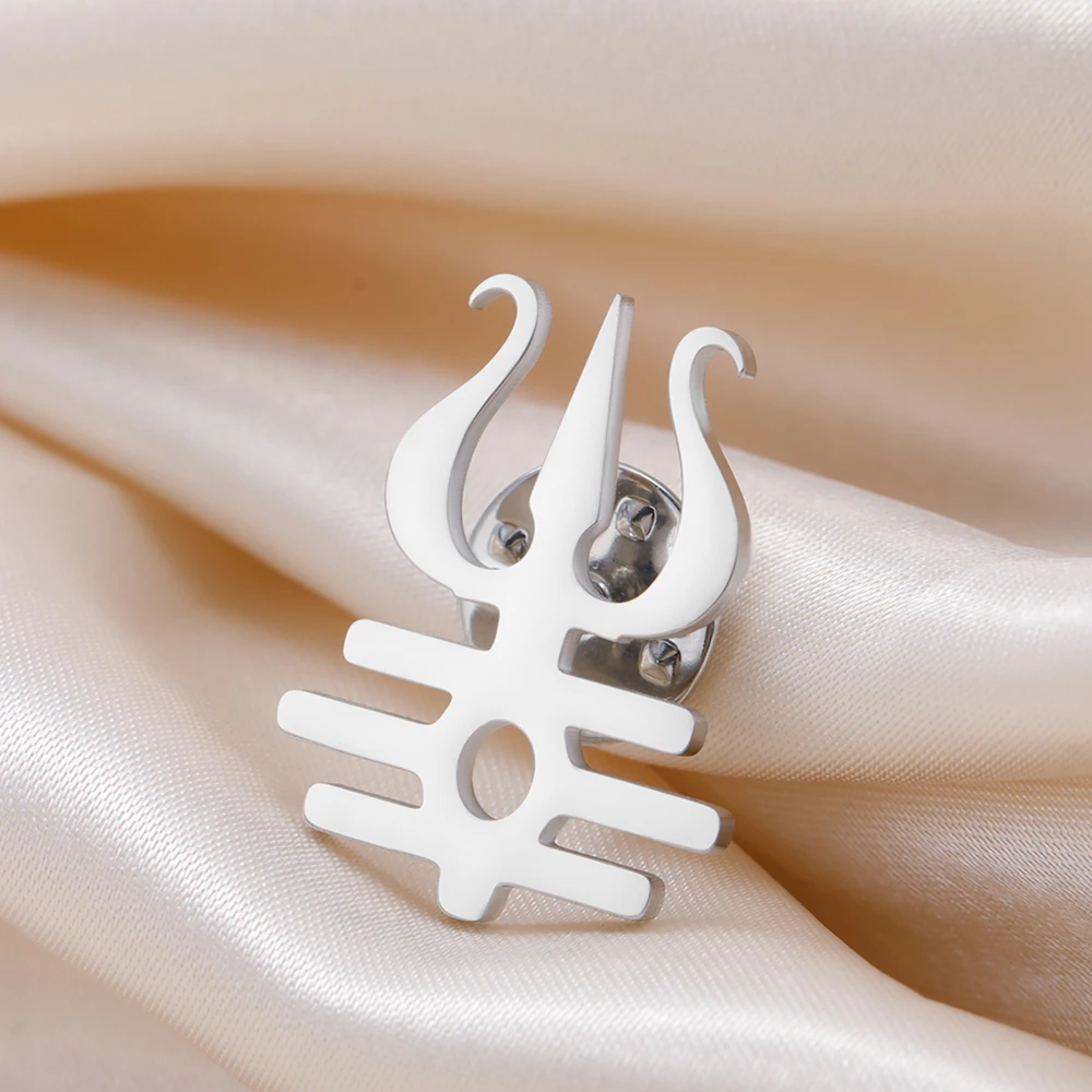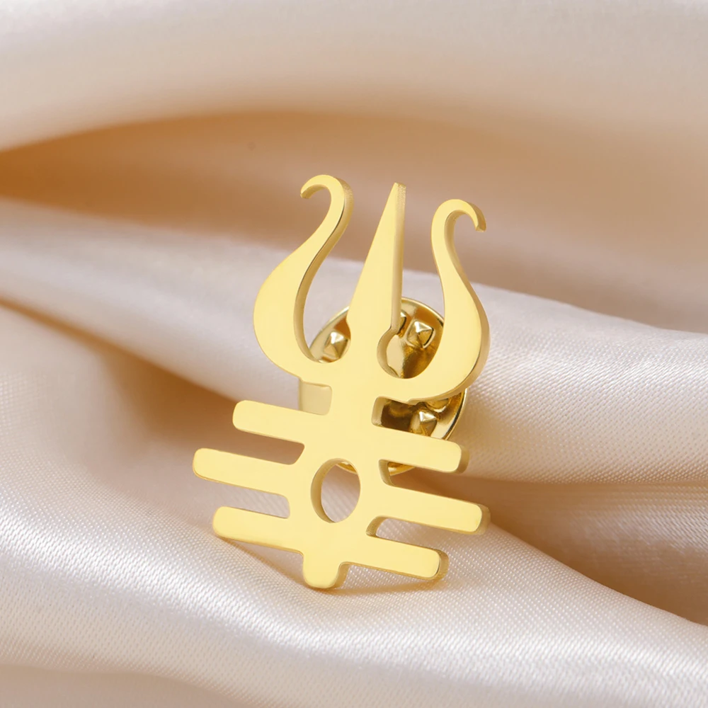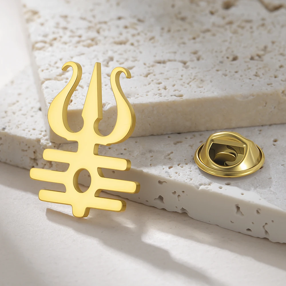 Elevate your style with this stunning stainless steel brooch featuring Lord Shiva’s trident motif. Available in steel and gold-tone finishes, this piece embodies modern elegance and spiritual significance. Its sleek, geometric design showcases clean lines and minimalistic detail, making it versatile for both men and women. Measuring approximately 20mm in width and 26mm in height, the brooch is lightweight yet durable, perfect for daily wear or special occasions like birthdays and graduations. The polished surface reflects light beautifully, adding a touch of sophistication to any outfit. Whether you're expressing your faith or enhancing your fashion statement, this brooch is a meaningful accessory that combines spiritual symbolism with contemporary style. It’s an ideal gift for those who appreciate meaningful jewelry with a modern aesthetic.