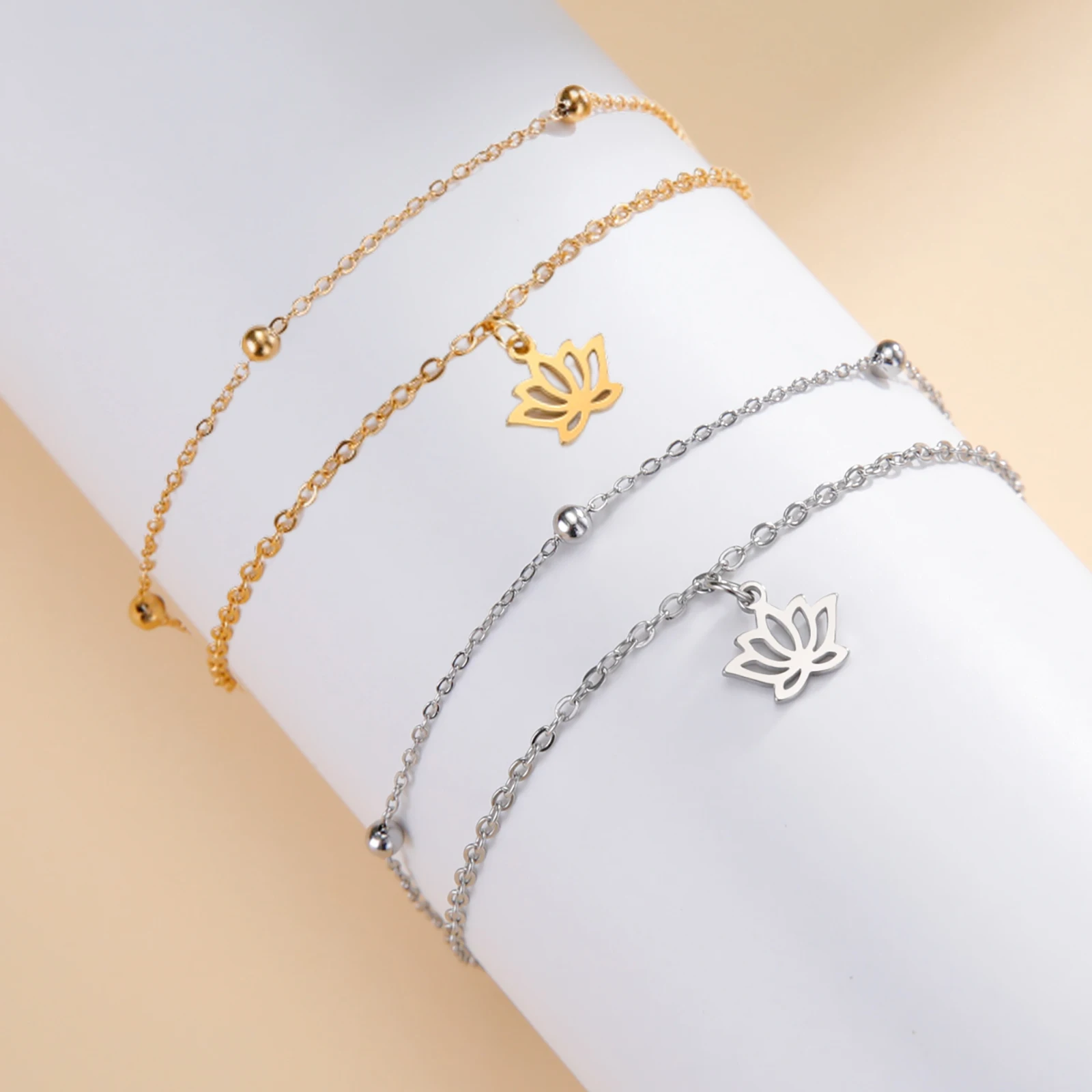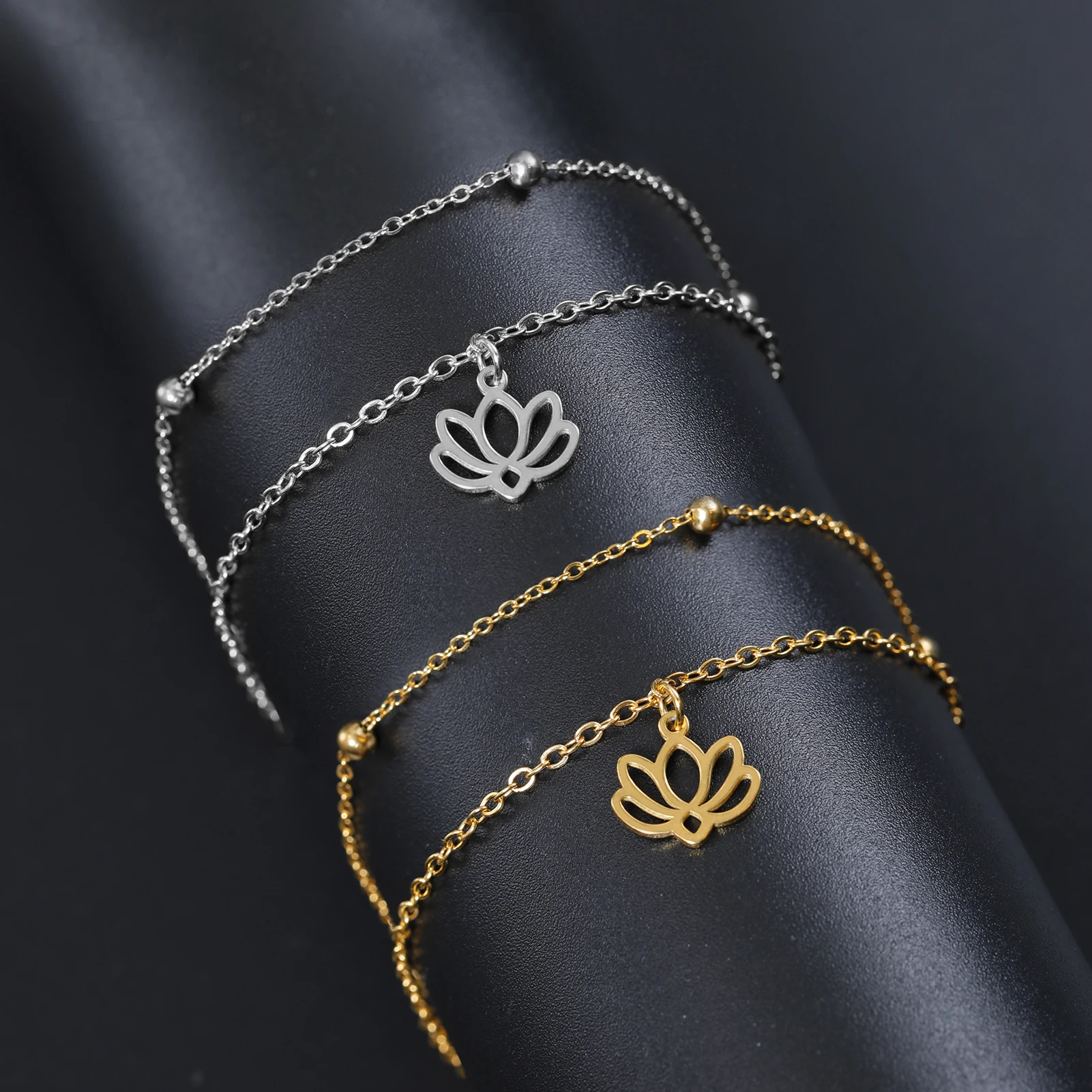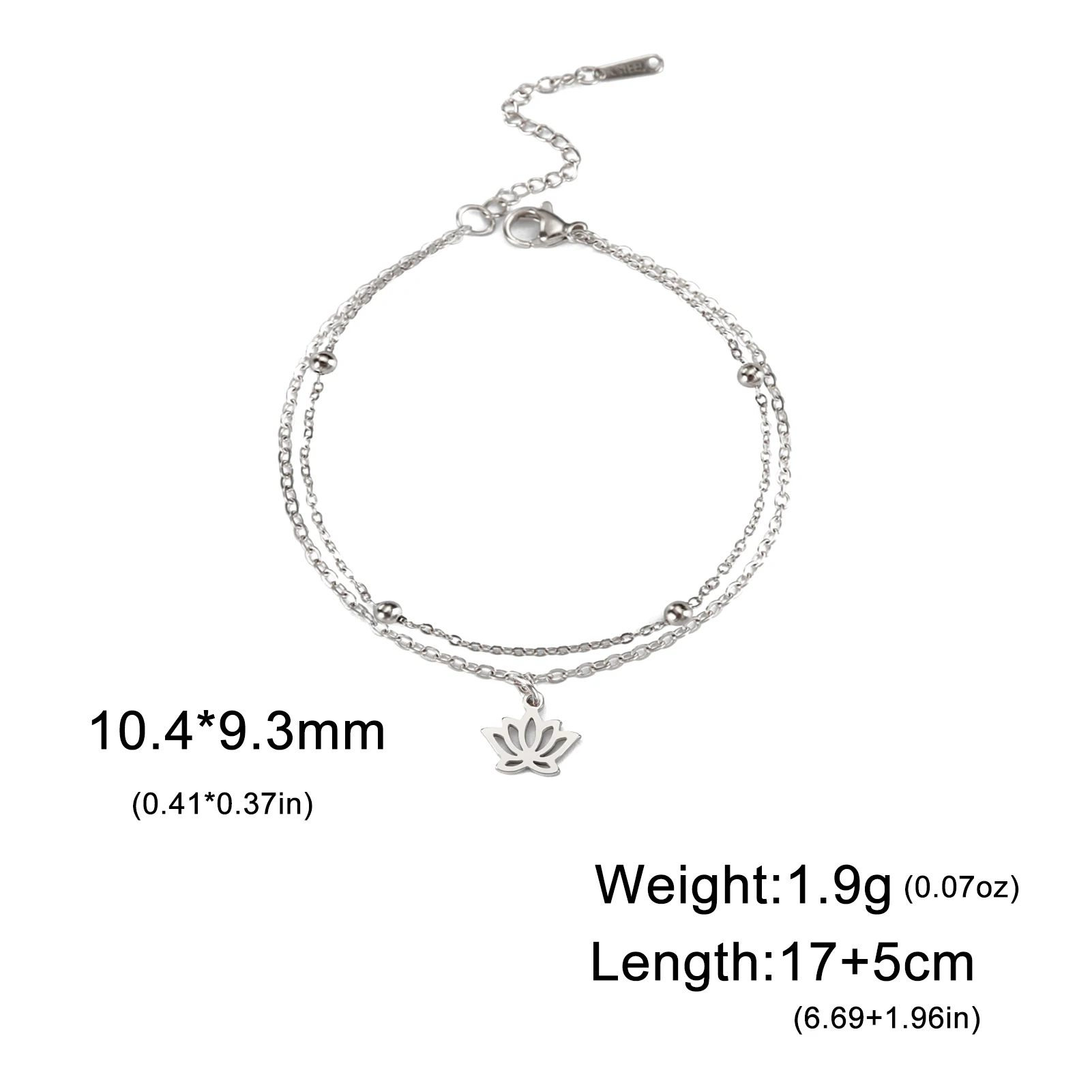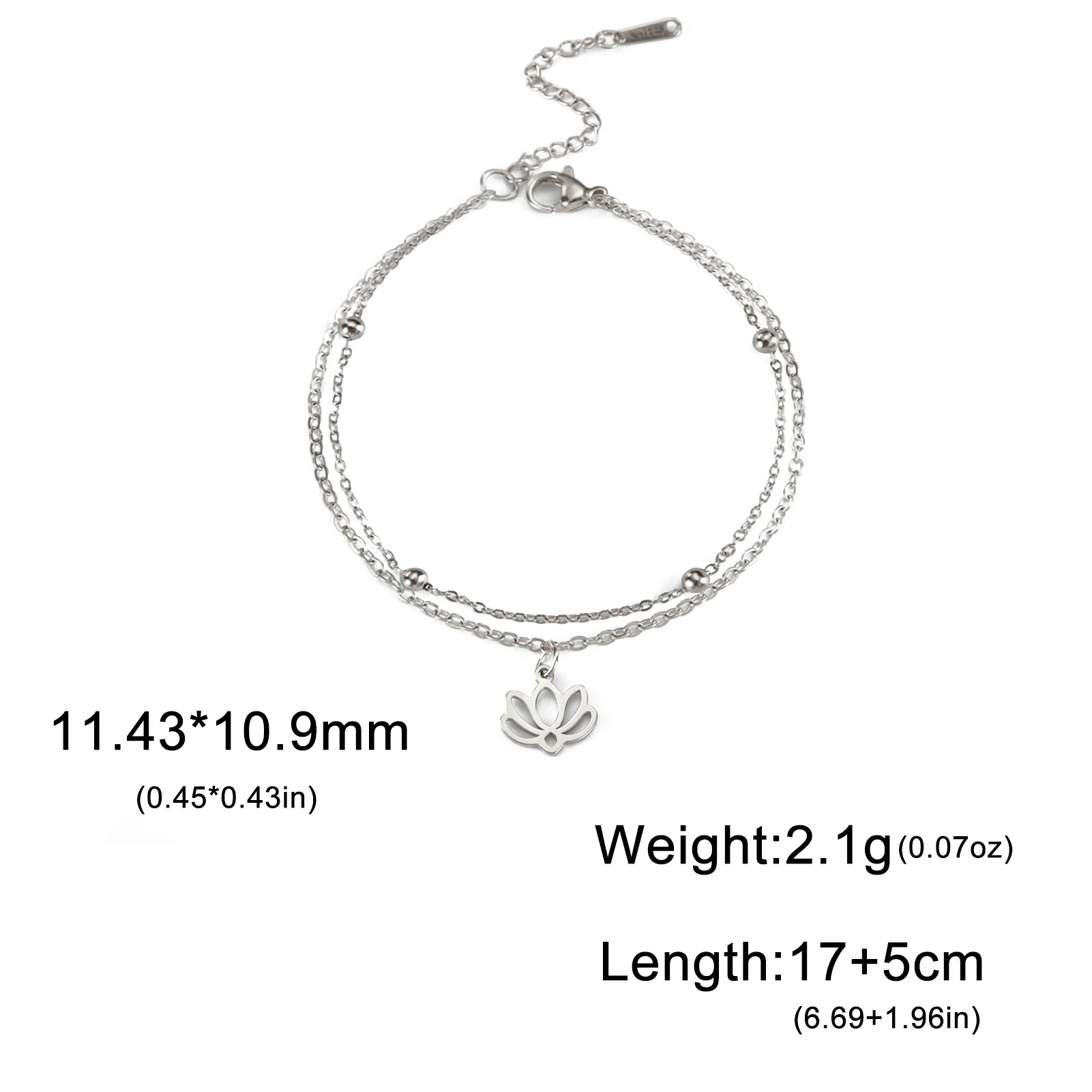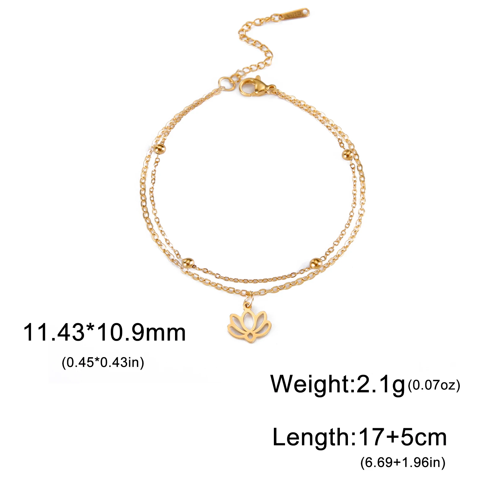 Imagine adding a touch of delicate charm to your everyday style with this stunning stainless steel lotus flower bracelet. Designed to be both fashionable and versatile, it features a beautiful double-layer chain with polished finishes in sophisticated gold and sleek steel tones. The intricate lotus charm and tiny bead accents provide a bohemian flair that elevates any look—whether casual, office, or special occasion. Crafted for comfort and durability, it’s made from high-quality stainless steel resistant to rust, corrosion, deformation, and fading. Adjustable from 17 to 22 cm with a secure lobster clasp, this bracelet promises a perfect fit while still being lightweight and easy to wear. It's an ideal gift for loved ones or a charming treat for yourself, perfect for every season.