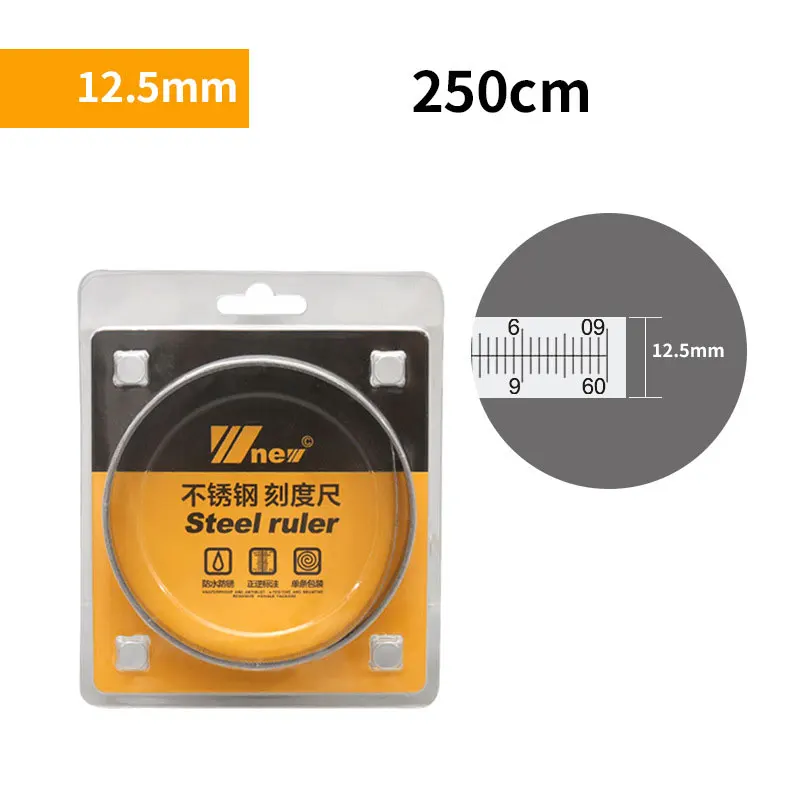 Upgrade your woodworking projects with this durable stainless steel graduated scale ruler, available in lengths of 0.6M, 1M, 1.5M, and 2.5M. With a sleek width of 12.5mm, it features a self-adhesive backing for easy attachment to surfaces, making it ideal for precise measurements and marking. The polished, reflective finish enhances its modern aesthetic while ensuring durability. Its finely printed black metric scale, from 0 to 50 centimeters, with millimeter graduations, allows for accurate, professional results. Perfect for DIY enthusiasts, this flexible, cuttable ruler combines functionality with sleek design, streamlining your woodworking and measurement tasks.