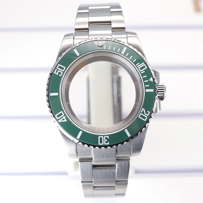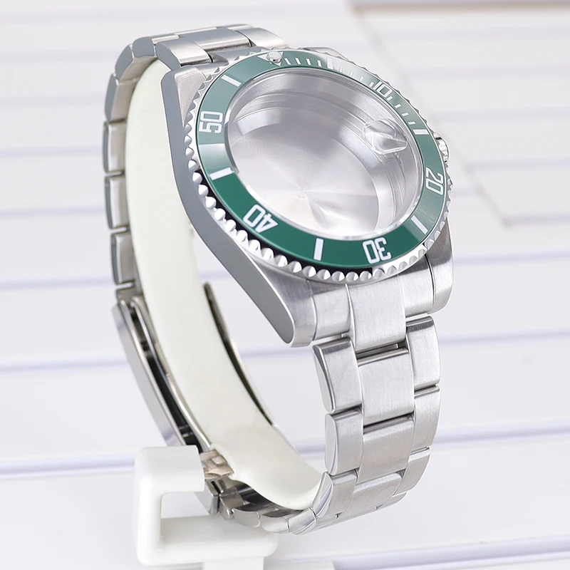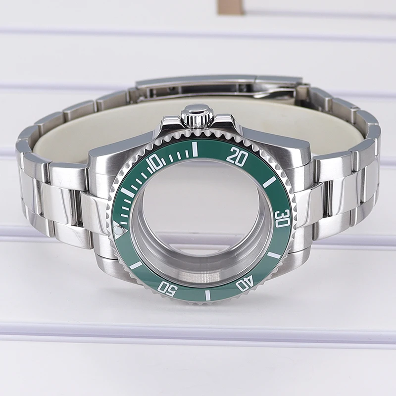 Experience the perfect blend of durability and elegance with this men's watch case, crafted from solid 316L stainless steel. With a sleek 40mm diameter and a thickness of 13.2mm, it offers a robust yet refined appearance suitable for both professional and active lifestyles. The silvery finish enhances its modern look, while the sapphire crystal glass provides exceptional scratch resistance and clarity. Designed for versatility, this case supports a variety of movements including NH35, NH36, NH38, NH34, 4R36, Miyota 8215, 8205, and ETA 2824, accommodating dial sizes from 28.5mm to 30.5mm. The ceramic bezel, compatible with 38mm x 30.6mm dimensions, adds a striking contrast with its dark green insert. Whether you prefer a transparent or solid stainless steel case cover, this product offers customizable options to suit your style.