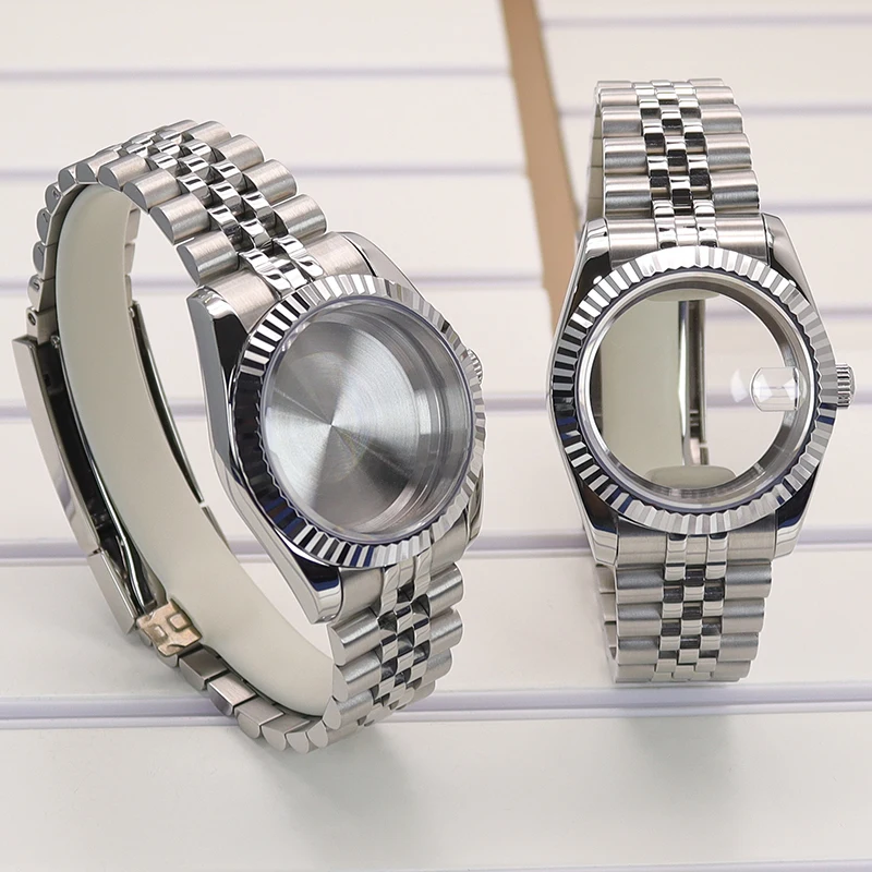 Experience the allure of timeless craftsmanship with this sophisticated 36mm and 40mm fluted curved watch case. Designed for versatility, it features a robust stainless steel construction along with a luxurious Jubilee bracelet that complements various styles. The sapphire crystal glass not only enhances its elegance but also provides excellent durability against scratches. Compatible with popular movements like Seiko NH35, NH36, and Miyota 8215, enjoy the seamless integration with your favorite dial. With a waterproof capability of 10 ATM, you can wear this stunning piece during various activities, knowing it withstands the elements with grace.