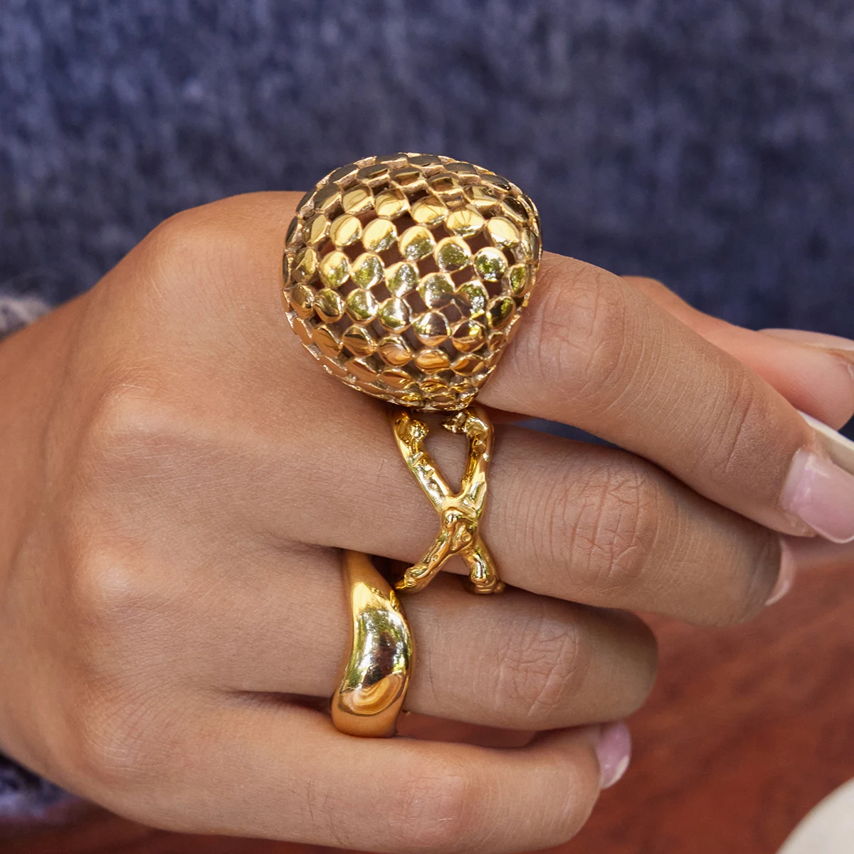Stainless Steel Mesh Spherical Cocktail Ring