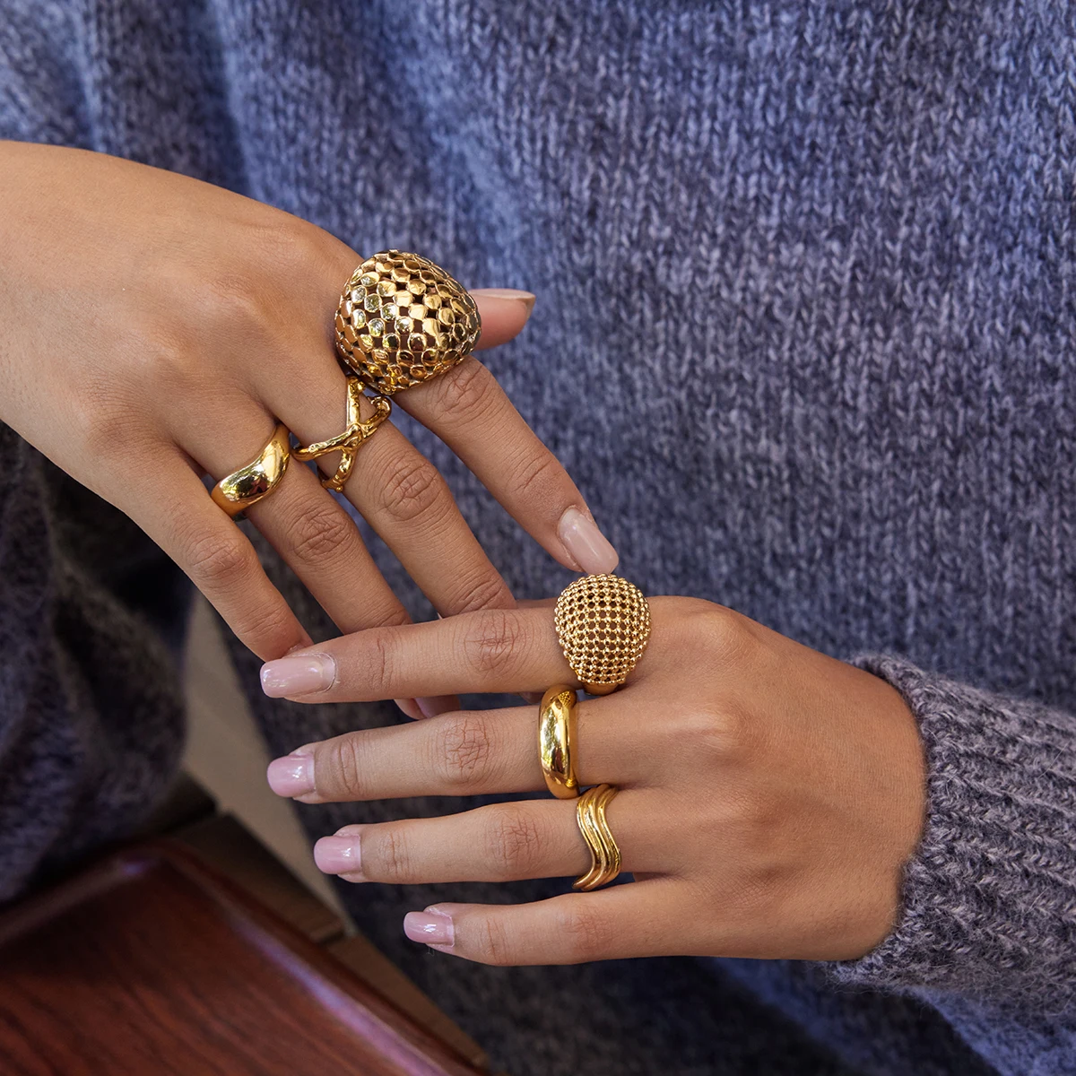 Elevate your style with this bold women’s fashion cocktail ring, featuring a 2mm wide mesh hollow spherical design crafted from waterproof stainless steel with platinum coating. Exuding an exaggerated, trendy aesthetic, it is perfect for parties and festive occasions, seamlessly matching all styles. Its round shape pattern, minimalist without additional gemstones, highlights the sleek, fashion-forward metal construction. The model number is JDR0106050-7, and originating from Zhejiang, this ring combines durability with eye-catching design, making it a statement piece that adds confidence and sophistication to any outfit.