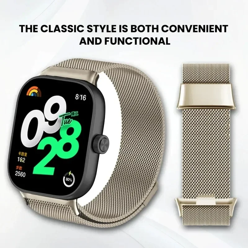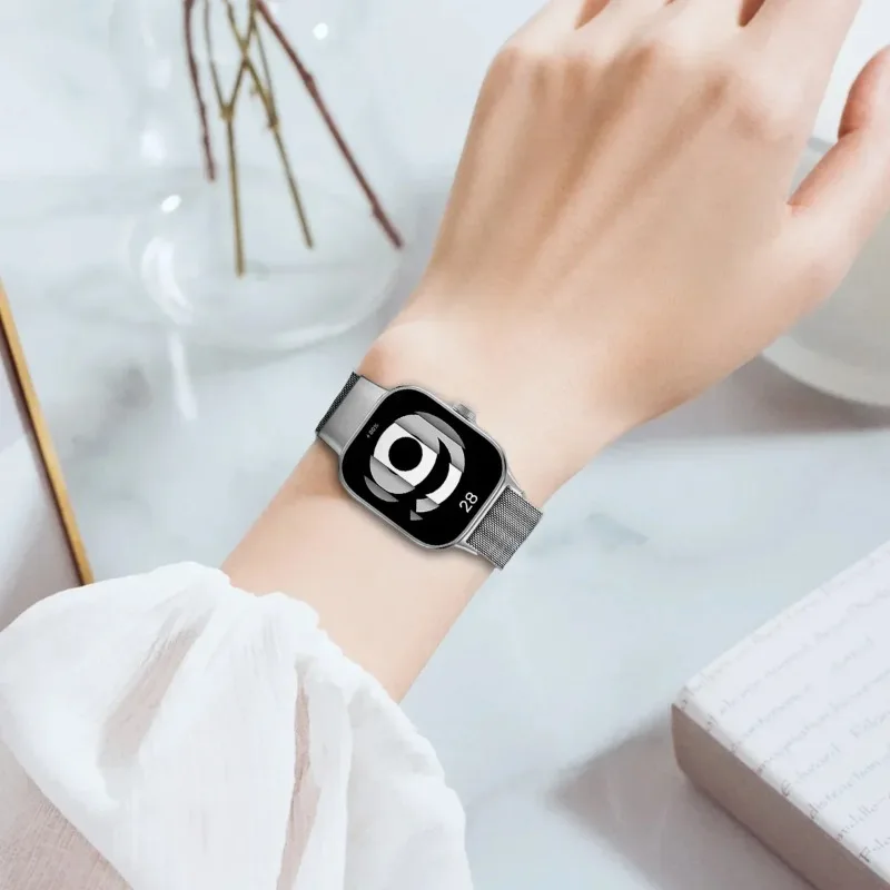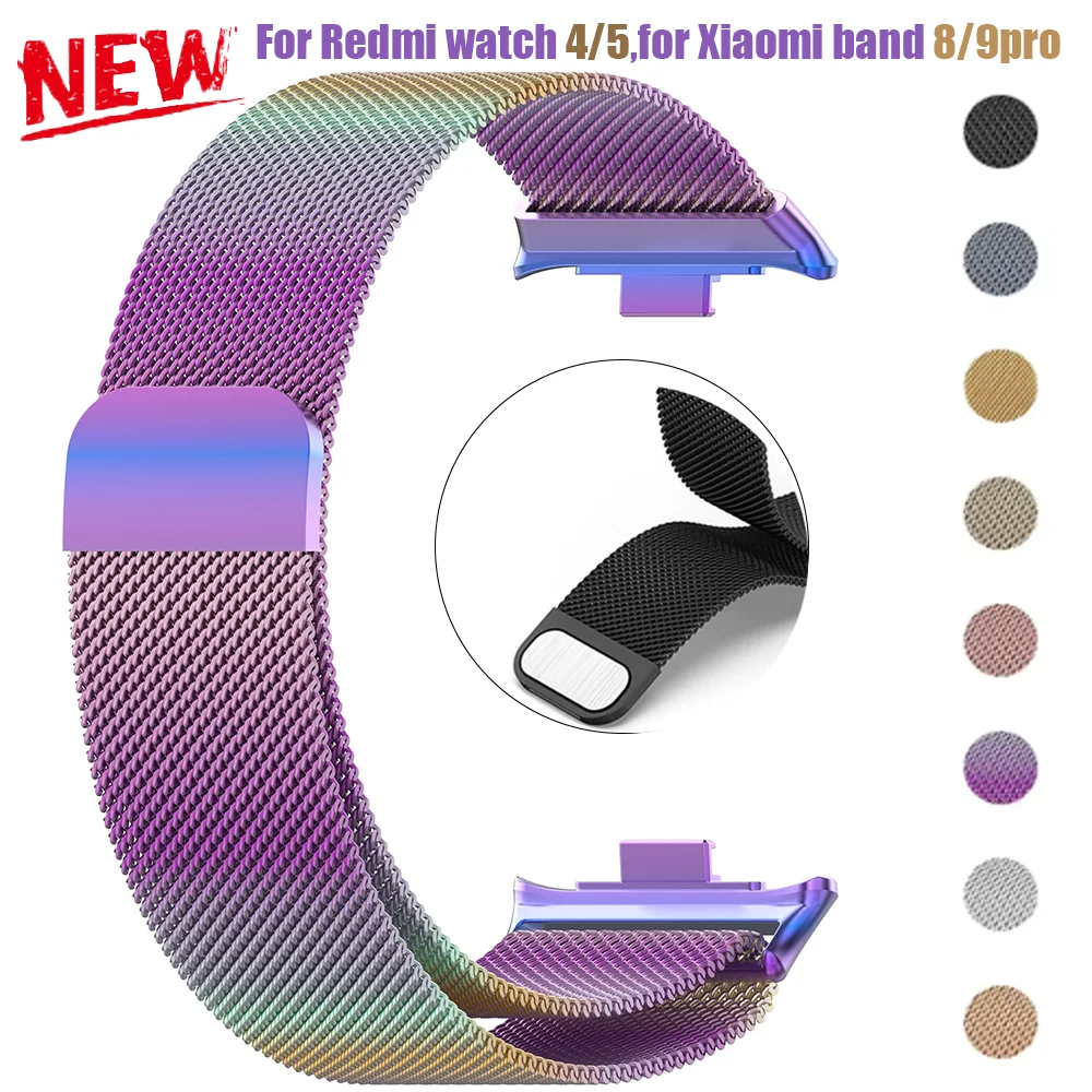 Experience a sophisticated upgrade with this stainless steel Milanese loop magnetic wristband, designed specifically for Xiaomi Mi Band 8/9 Pro and Redmi Watch 4/5/8 Pro models. Its sleek woven mesh appearance provides a modern, elegant style while maintaining durability and comfort. The magnetic clasp ensures a secure, adjustable fit, making it easy to customize your watch strap throughout the day. Available in vibrant colors including black, gold, grey, rose gold, rose pink, rainbow, silver, and starlight, this replacement band elevates your smartwatch's look effortlessly. Crafted from high-quality stainless steel, it combines strength with a polished, shiny finish. Whether for daily wear or special occasions, this strap combines style, convenience, and robustness seamlessly, making your smartwatch truly stand out.