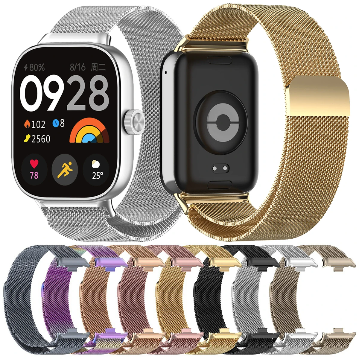 - This unisex set includes a stainless steel Milanese loop bracelet with a magnetic clasp, providing a flexible fit and luxurious appearance in five vibrant colors, suitable for Xiaomi Redmi Watch 4 and 5 models.