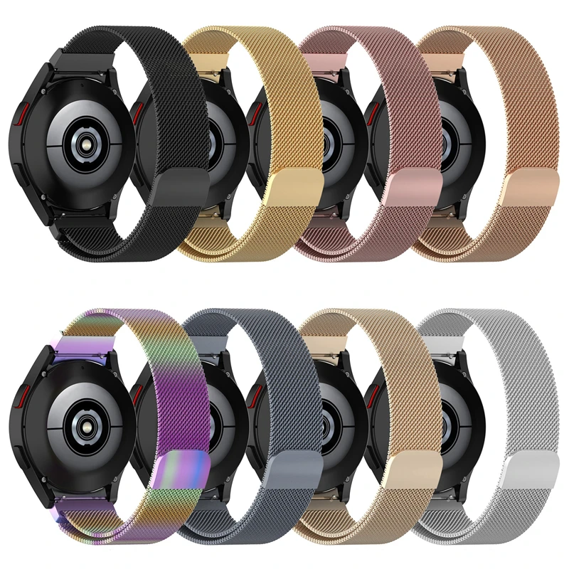 Experience the perfect blend of style and functionality with this stunning stainless steel Milanese Loop strap designed for popular smartwatch models. Its sleek, polished finish and finely woven mesh pattern offer a sophisticated appearance suitable for any occasion. Available in multiple eye-catching colors, including black, blue, colorful, gold, pink, rose gold, and silver, this strap elevates your watch’s aesthetic. The magnetic clasp provides effortless adjustment for a secure, comfortable fit tailored to your wrist size. Crafted from high-quality stainless steel, it promises durability and longevity. Whether you're dressing up for a formal event or casual everyday wear, this versatile strap seamlessly enhances your smartwatch's look while remaining practical and comfortable.