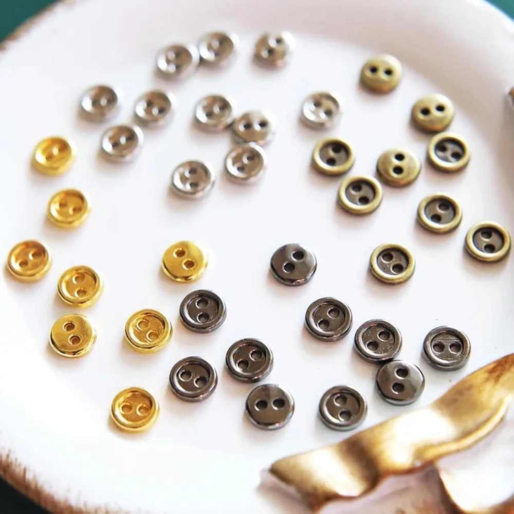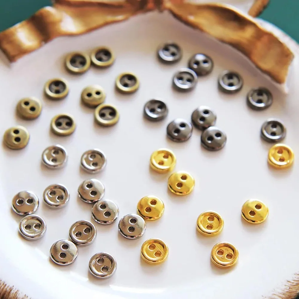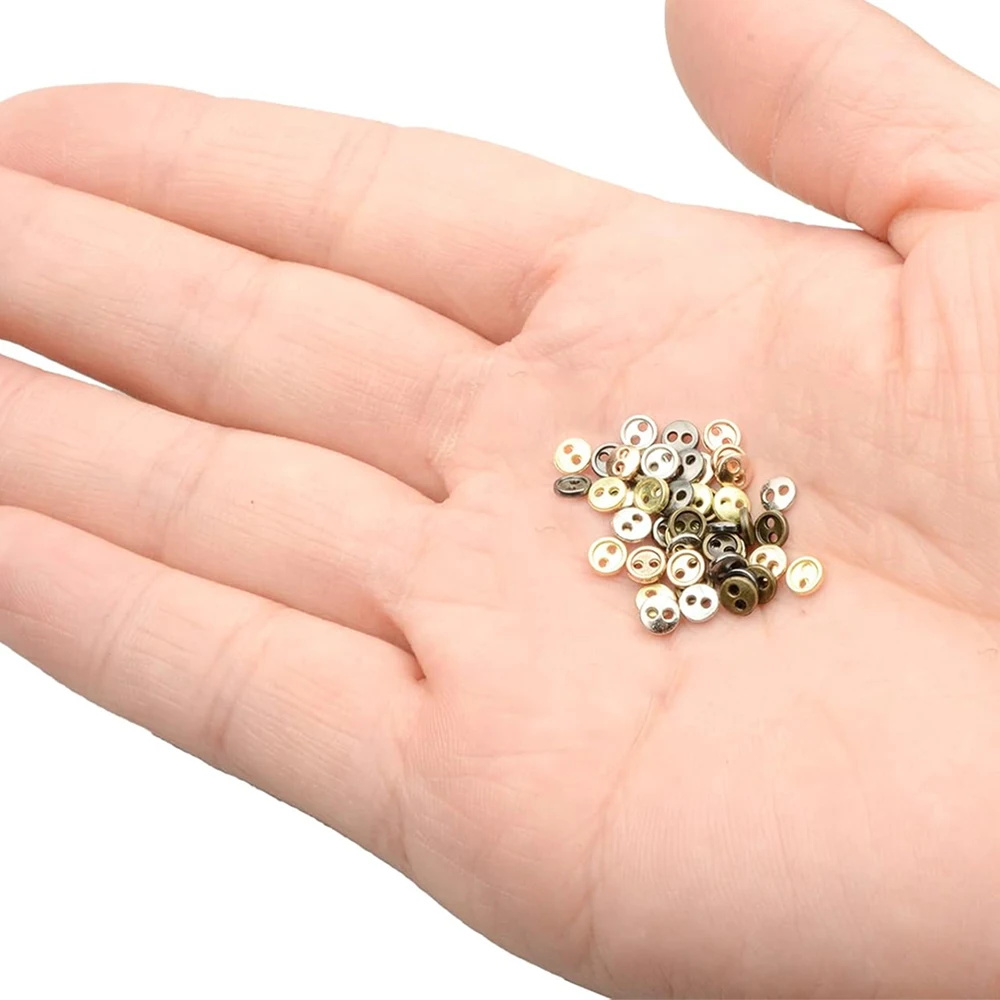Imagine enhancing your sewing projects with these sleek and durable metal buttons. Crafted from high-quality stainless steel, they feature a 3mm diameter and a stylish 2-hole round design, perfect for doll clothes, handmade accessories, and miniature garments. Each button boasts a polished, plated finish in four elegant colors: silver, gold, bronze, and black, giving your creations a shiny, professional look. Their flatback style ensures a seamless, minimalist aesthetic while providing excellent strength and resistance to wear and tear. Designed for both durability and style, these buttons are washable and resistant to corrosion, making them ideal for long-lasting project use. Add a touch of sophistication and reliability with these versatile mini buttons.