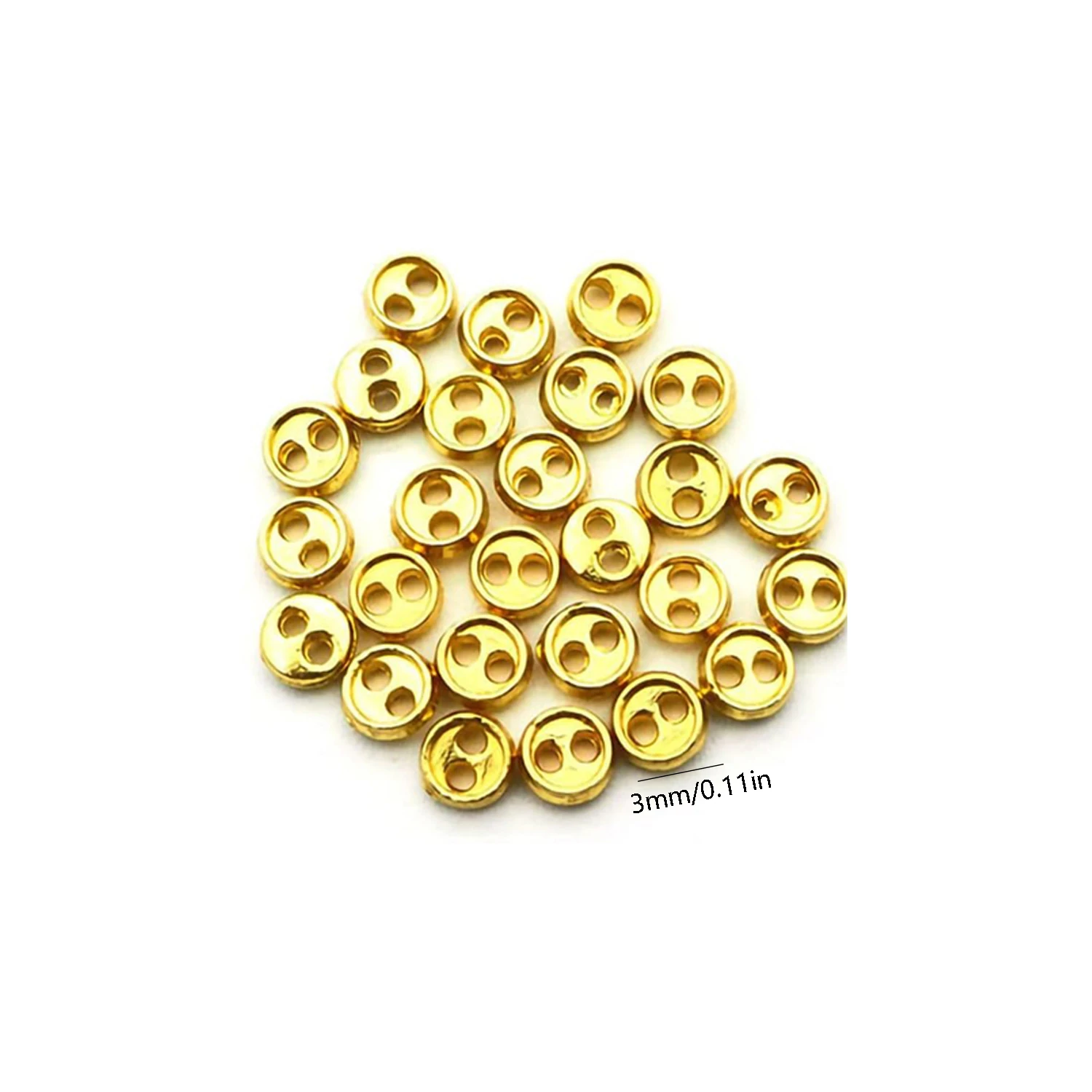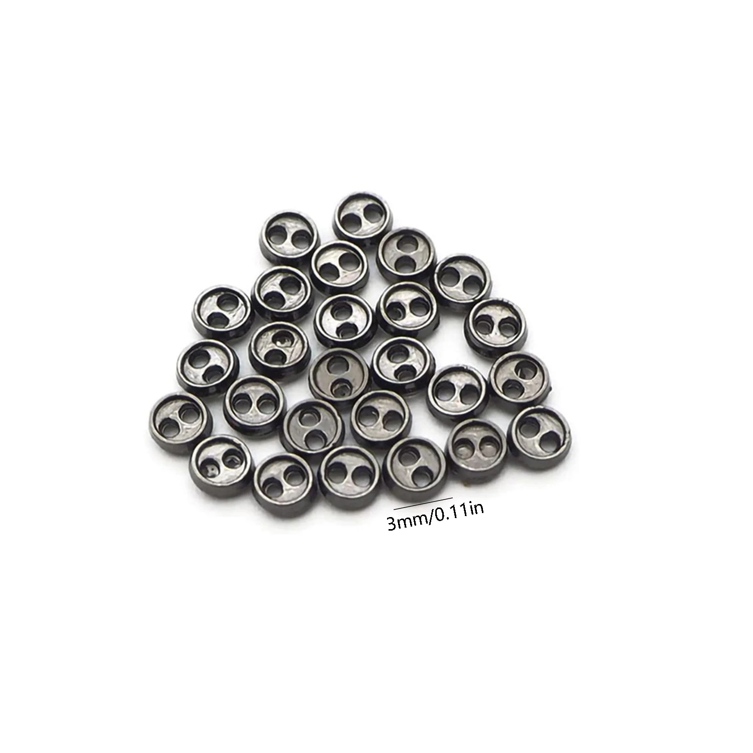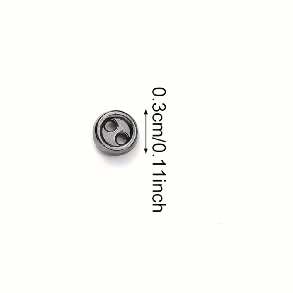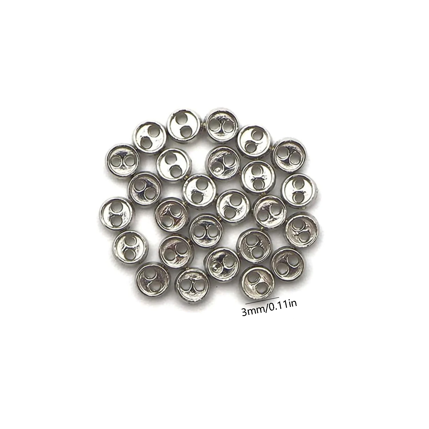 - 100 stainless steel mini buttons measuring 3mm in diameter, perfect for detailed sewing projects and accessories.
