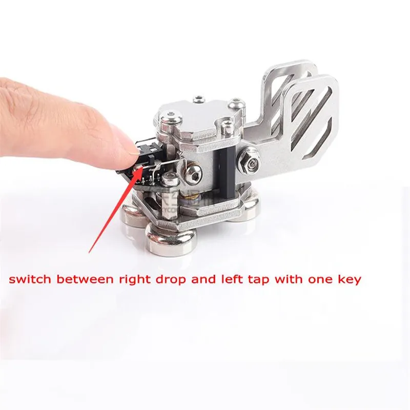 Experience the perfect blend of durability and portability with this stainless steel Morse code paddle key. Crafted from high-quality stainless steel, it offers a sleek, polished finish and long-lasting performance. Its compact design makes it easy to carry and operate outdoors, ideal for radio enthusiasts and emergency communications on the go. The device features two side-by-side paddle contacts with an adjustable gap, allowing you to customize your telegraphy experience for comfort and efficiency. The magnetic base, embedded with three neodymium magnets, ensures a secure attachment to iron surfaces such as radio shells, automobile covers, or other metal objects, enabling quick and stable positioning without mounting hardware. A hinge mechanism allows smooth pivoting, and the inclusion of a switch lets you switch effortlessly between left- and right-hand operation, making it versatile for various users.
