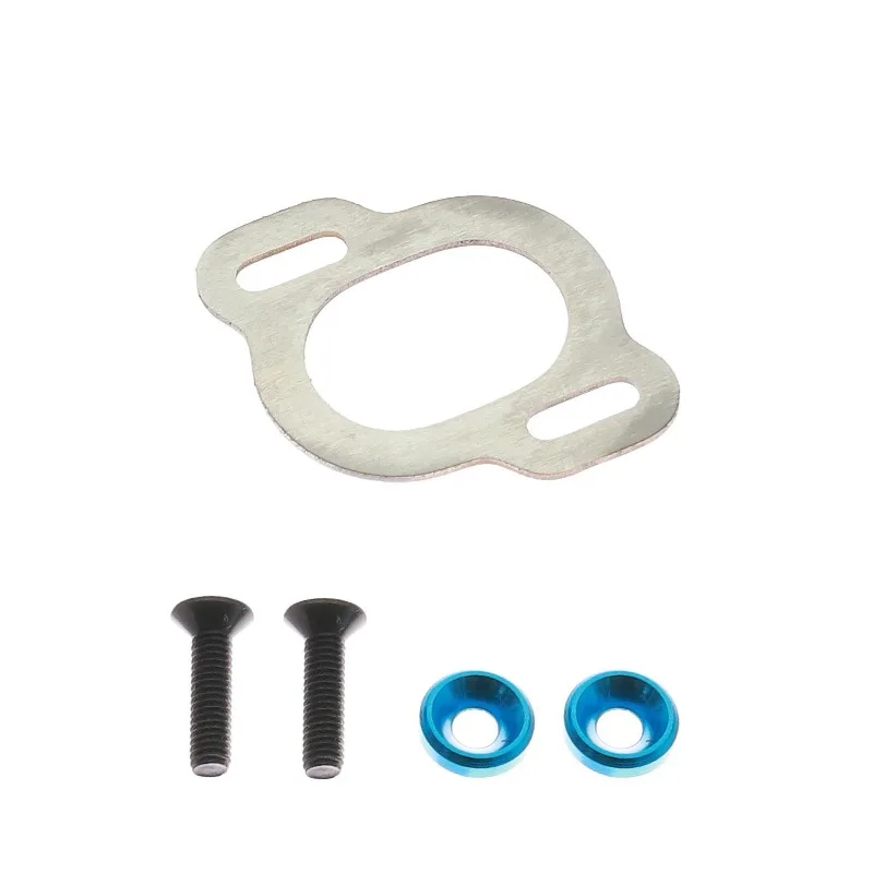 - Includes black screws and blue washers/spacers for precise installation, stability, and cushioning on the motor mount.