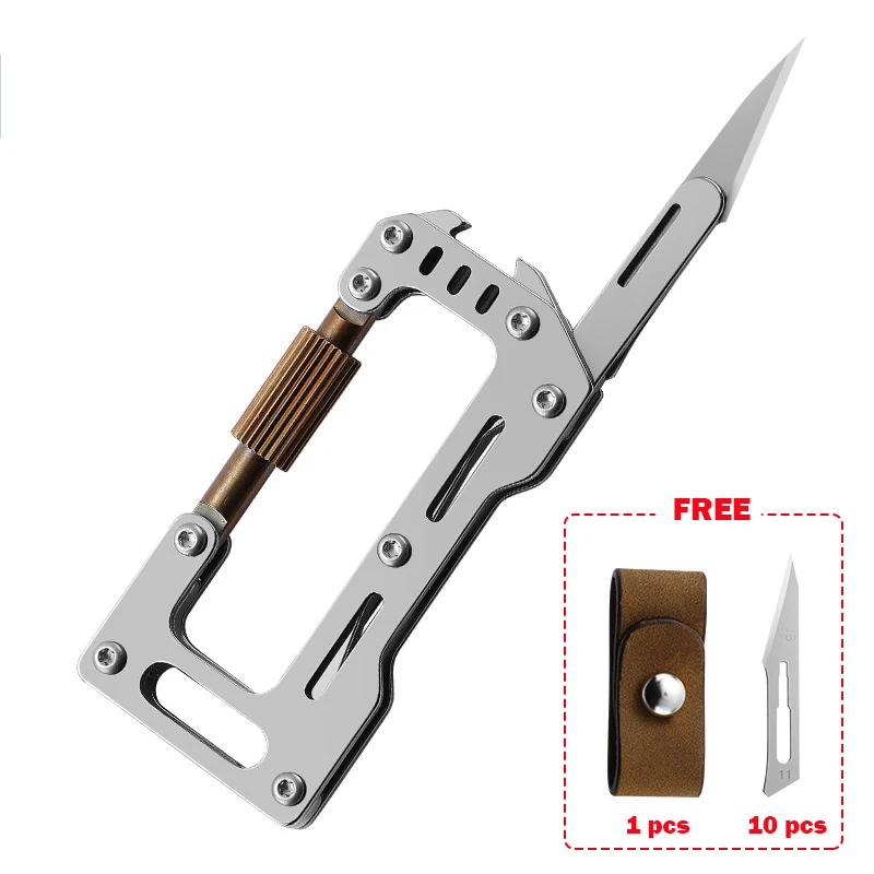 - Comes with a cowhide keychain and 10 additional replacement blades, allowing you to always be prepared for various tasks on the go.