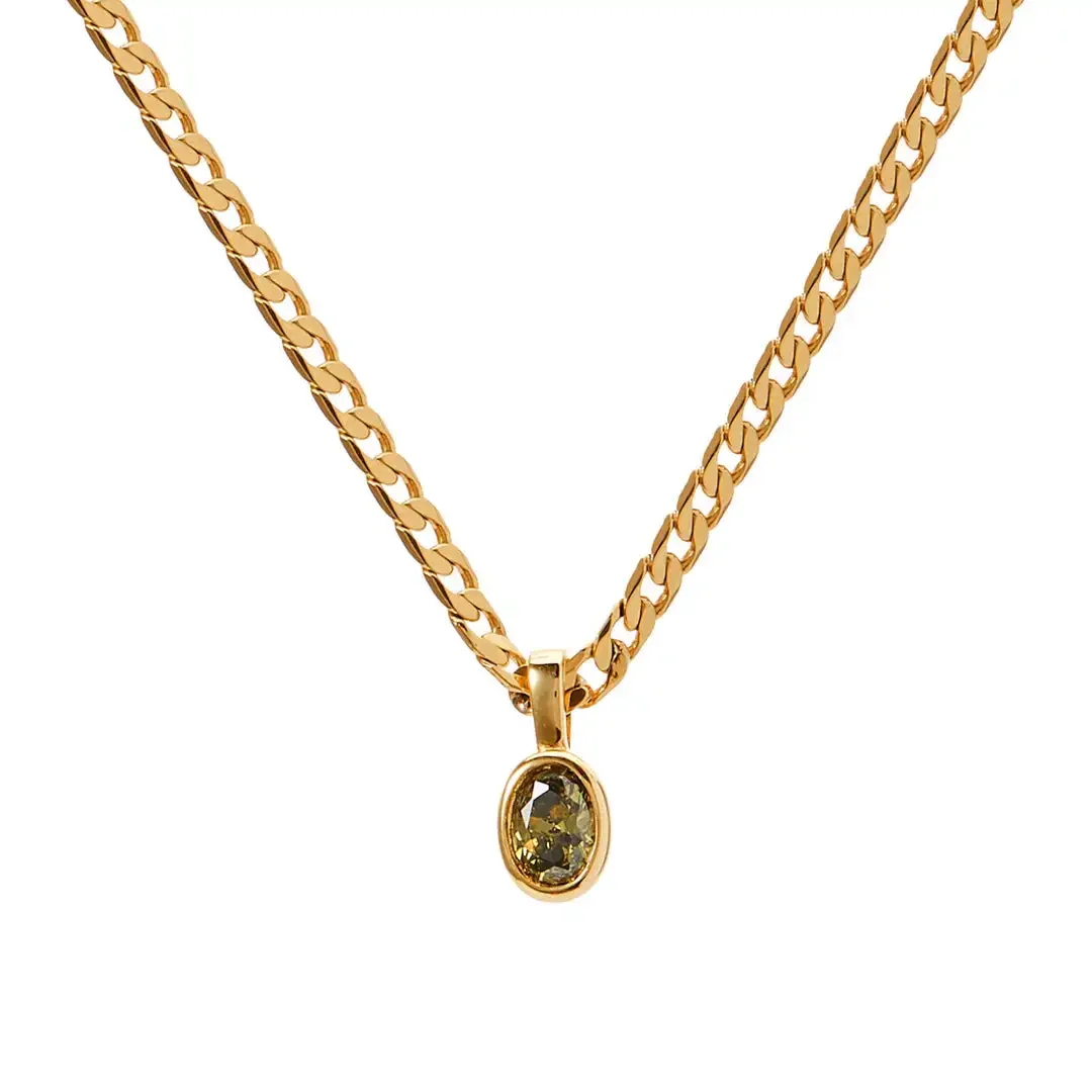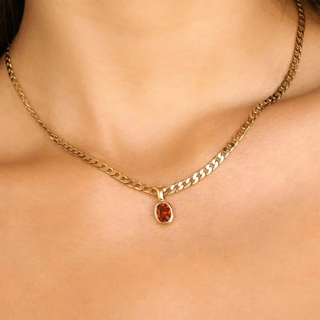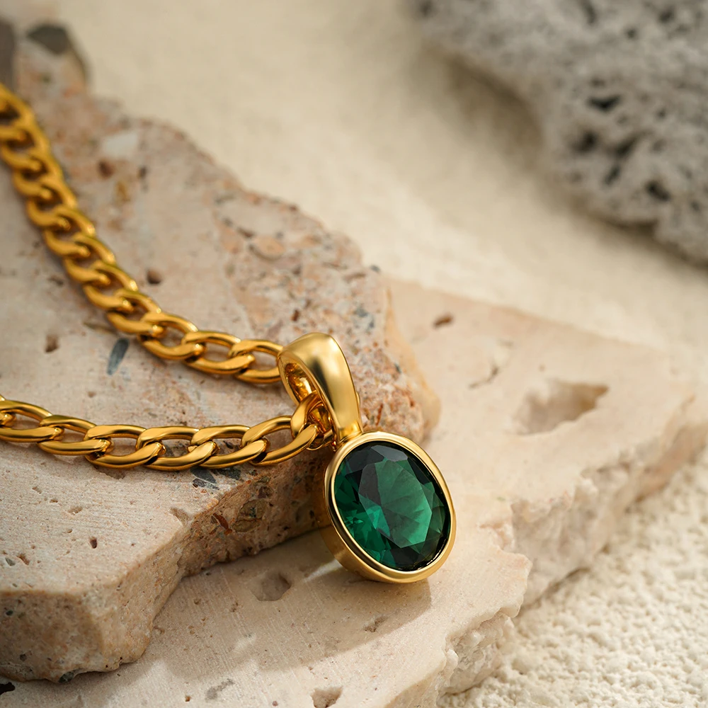 Imagine elevating your style with this stunning women's necklace featuring a captivating multicolour oval-shaped natural stone pendant. The vibrant stone, set in zircon and mounted on a sleek stainless steel base, radiates a deep green hue with subtle light reflections, adding an element of sophistication and charm. The necklace’s shiny, gold-toned link chain offers both durability and elegance, comfortably resting on the upper chest for versatile wear. Its contemporary yet delicate design makes it perfect for parties, casual outings, or adding a touch of glamour to any outfit. The overall look is trendy, eye-catching, and beautifully balanced between modern chic and subtle elegance, making it a must-have accessory for every fashionable woman.