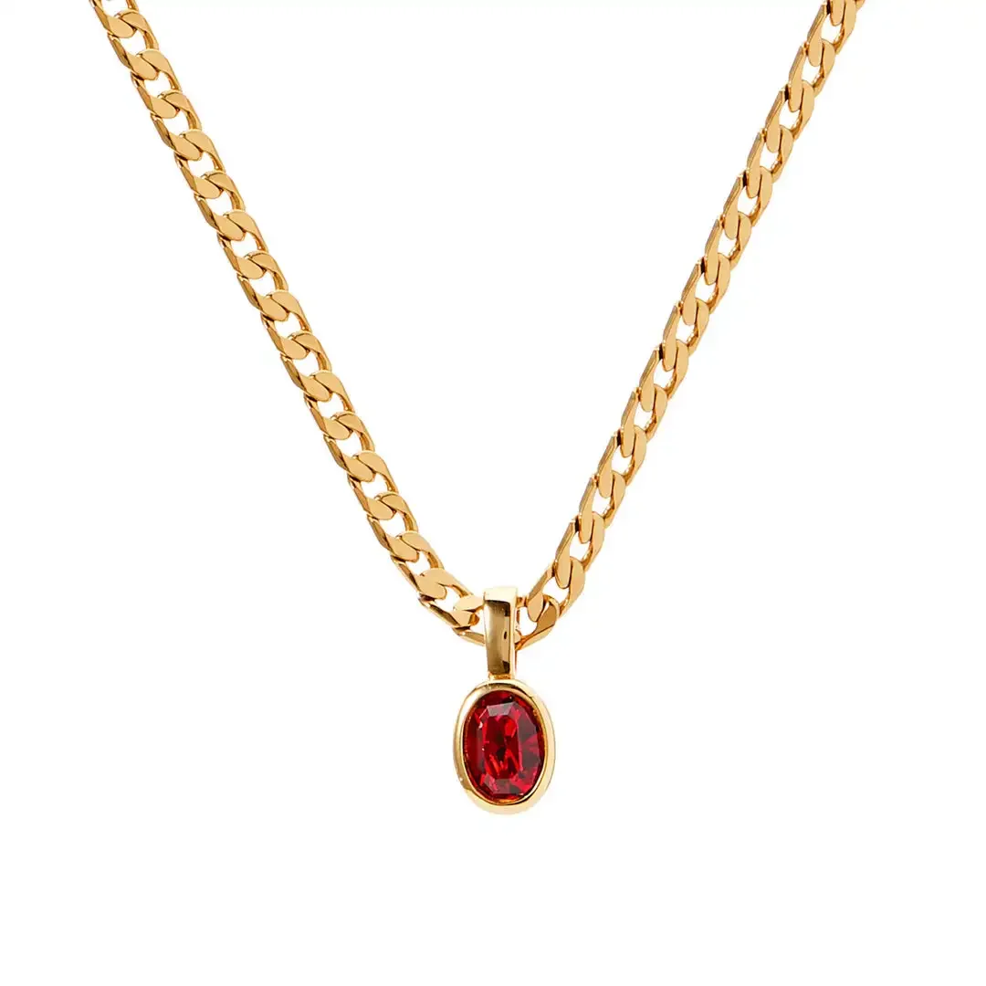 - The pendant displays a vibrant multicolour oval-shaped natural stone set in zircon, offering an eye-catching contrast with the gold-tone setting.