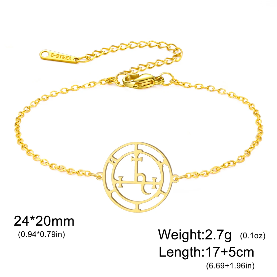 Experience the allure of this stunning Mythical Sigil of Lilith bracelet, expertly crafted in durable stainless steel. Available in radiant silver or warm gold tones, it offers a perfect blend of modern minimalism and vintage charm. The intricate sigil pendant, measuring 24×20 mm, is elegantly designed with symmetrical cutouts that evoke mystical symbolism. Paired with a polished link chain composed of shiny spherical beads, the bracelet exudes sophistication and mystique. Its adjustable length of 17+5 cm with a secure lobster clasp ensures a comfortable fit for women and girls alike. Whether you're celebrating a special occasion or adding a symbolic touch to your everyday style, this bracelet promises timeless durability and captivating beauty.