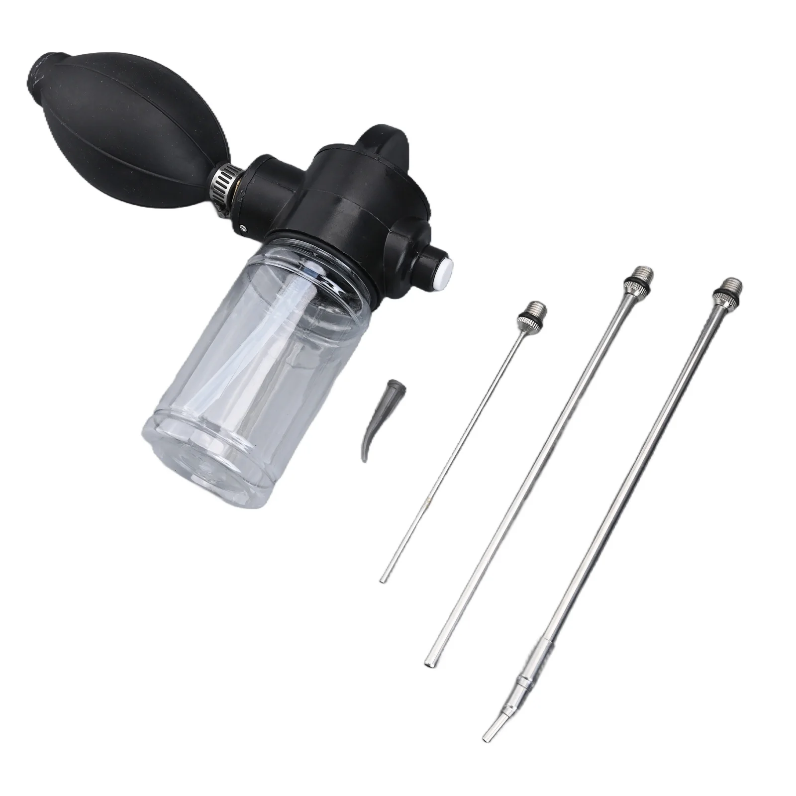 Experience efficient pest management with this sleek fly control bulb duster, designed to make your tasks easier and more effective. Its modern, ergonomic design features a matte black, oval-shaped silicone bulb that’s flexible and easy to squeeze, ensuring a comfortable grip. The translucent plastic reservoir allows you to monitor your pest control agent levels at a glance. Attached to the bulb is a slim, stainless steel nozzle that provides precise spraying, perfect for targeting flies or termites. The set includes three interchangeable nozzles, offering versatility for various applications in home, garden, or agricultural settings. Its durable, easy-to-clean materials ensure long-lasting use, transforming pest control from a chore into a hassle-free experience.