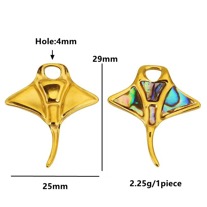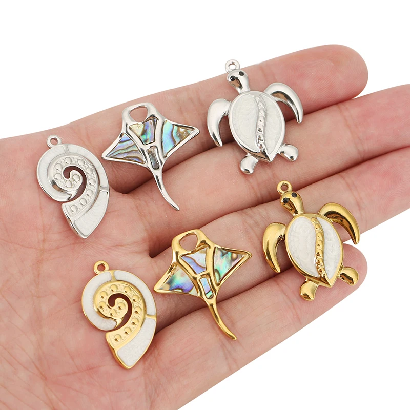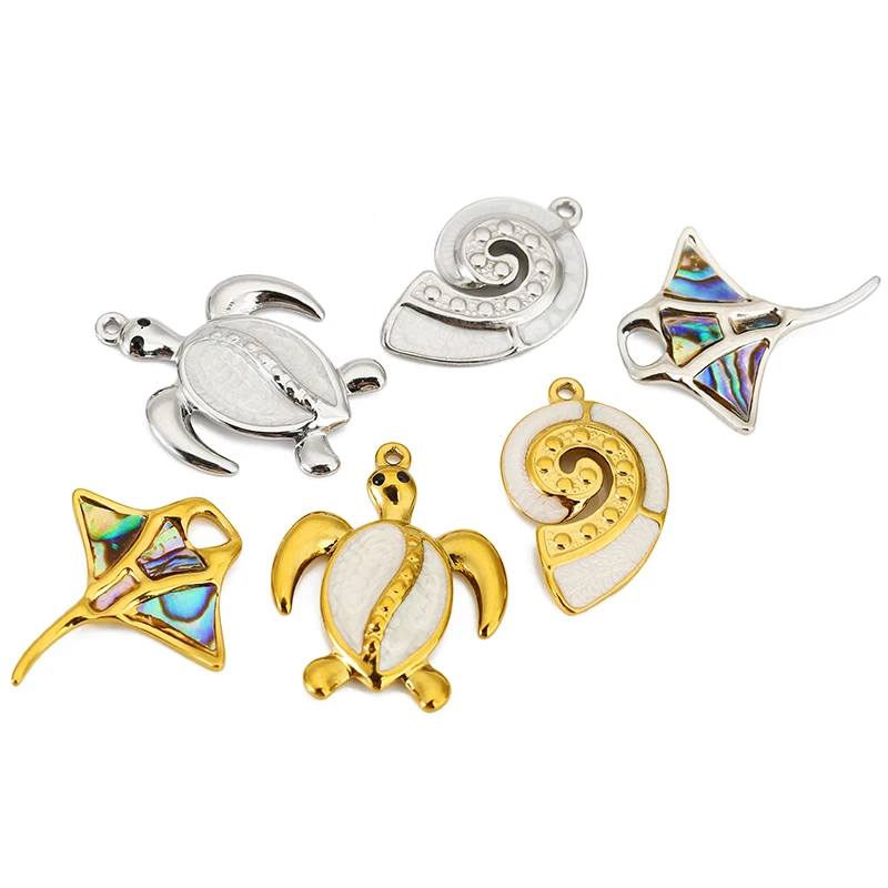 Imagine adding a touch of marine elegance to your jewelry collection with this stunning set of four stainless steel charms. Each piece features intricate ocean-inspired designs, including a vibrant iridescent devil fish, a detailed textured tortoise, and a beautifully patterned conch shell, available in gold and steel finishes. These versatile charms are perfect for creating personalized necklaces, bracelets, or earrings, allowing you to craft unique accessories that reflect your love for the sea. Their durable stainless steel build offers resistance to tarnish and corrosion, ensuring your jewelry remains beautiful over time. Whether you're a seasoned jewelry maker or a passionate hobbyist, this set sparks creativity and elevates your designs effortlessly.