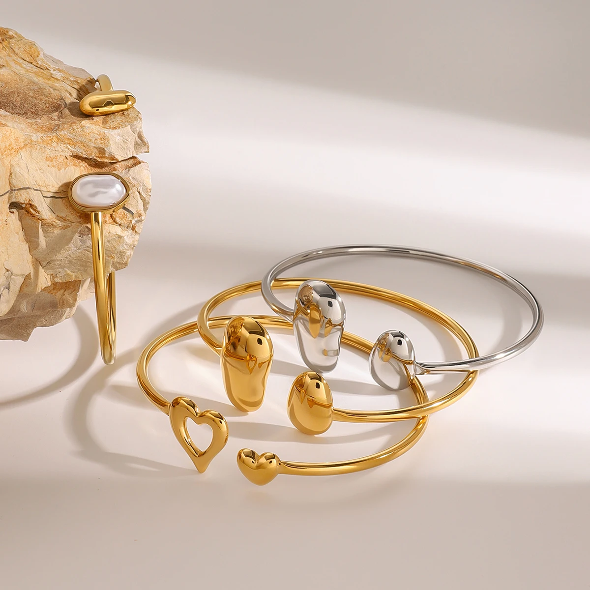 Stainless Steel Open Heart Bangle Bracelet
