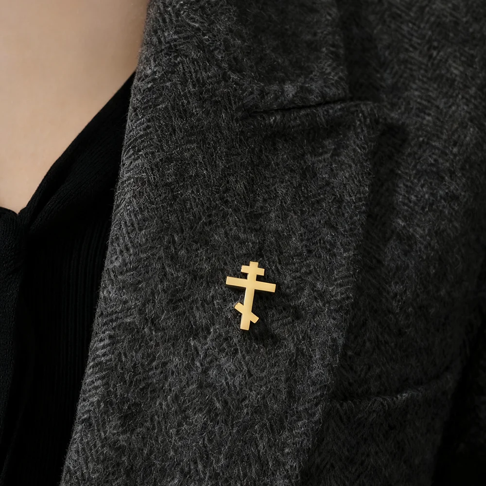 Imagine adding a touch of spiritual elegance to your everyday attire with this chic Orthodox Cross Brooch. Crafted from durable stainless steel, it is available in sleek steel color or luxurious 18k gold-plated gold color, offering versatility for any style. The minimalist design features a classic cross shape measuring 25×18 mm, weighing just 2.1 grams—perfect for subtle yet meaningful accessorizing. Its smooth edges and simple aesthetic make it ideal for both casual and formal occasions. The brooch's anti-rust, anti-corrosion, and hypoallergenic qualities ensure lasting beauty and comfort. Wear it as a symbol of faith, a fashion statement, or a thoughtful gift that embodies strength and spirituality. This brooch combines durability with understated style, making it a timeless accessory in your collection.