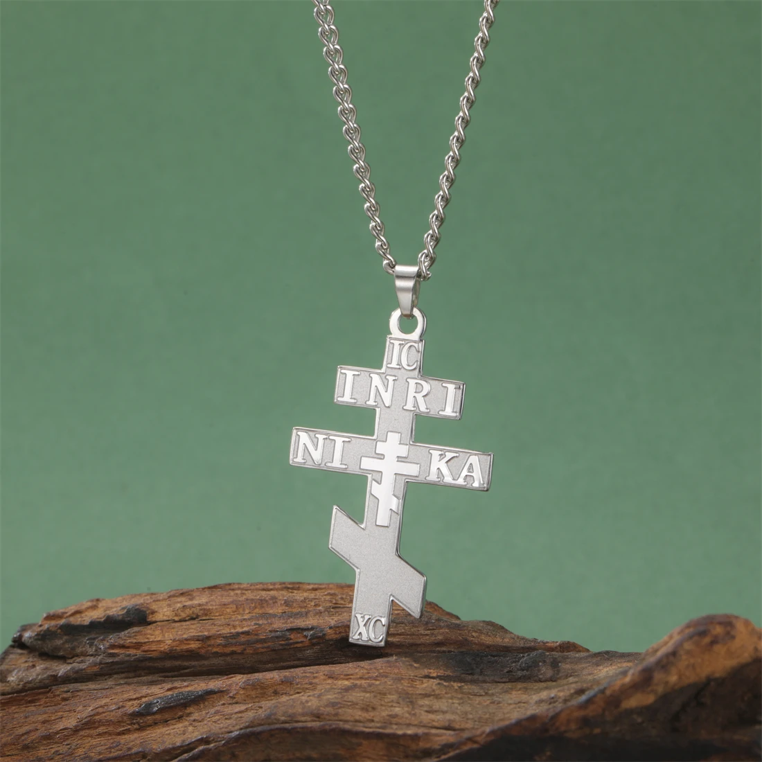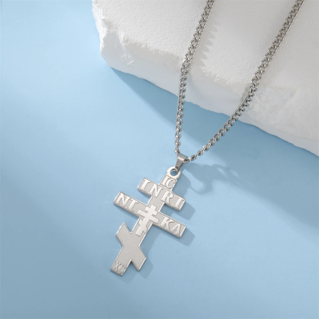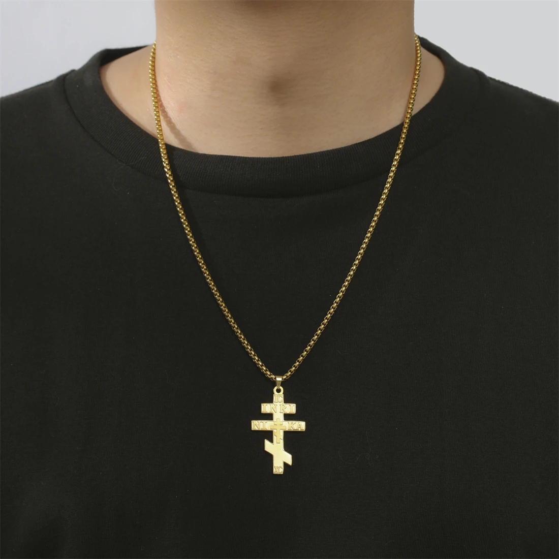 Experience timeless elegance with this unisex Orthodox Church Cross Pendant Necklace crafted from durable stainless steel. Measuring 41x25mm, the cross features intricate engraved symbols including “IC,” “XC,” and “INRI,” highlighted by a smaller cross at the intersection for added symbolism. Available in a polished silver or gold finish, the necklace features a sturdy 60cm box chain or 3mm link chain options, designed for everyday wear and special occasions alike. Resistant to rust, corrosion, and fading, this non-allergenic, anti-acid, and anti-alkali jewelry combines religious significance with modern style, making it a meaningful addition to your collection.
