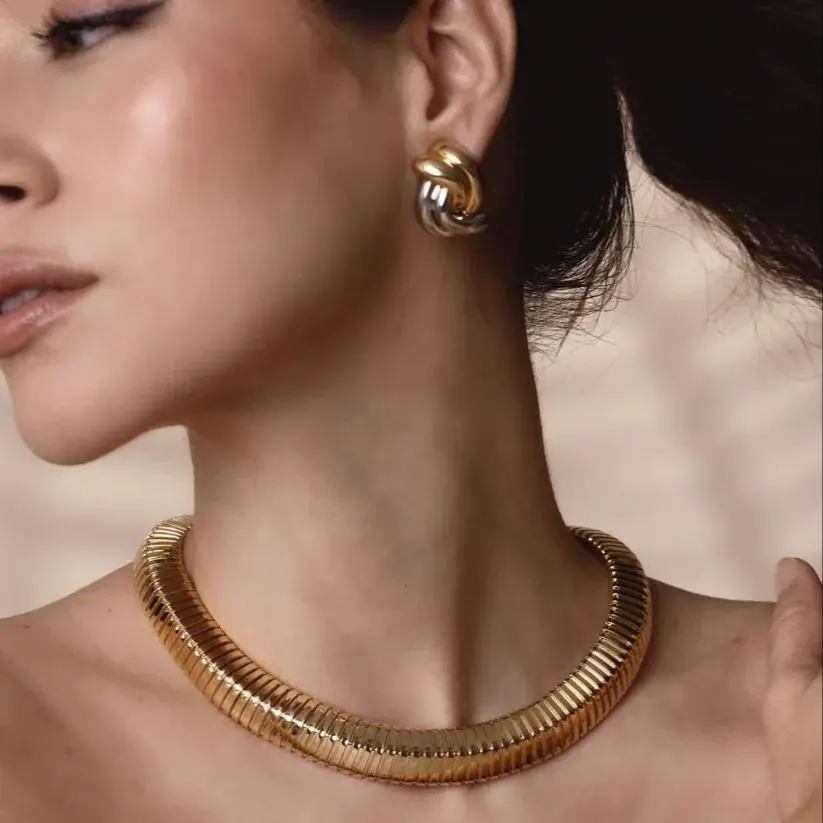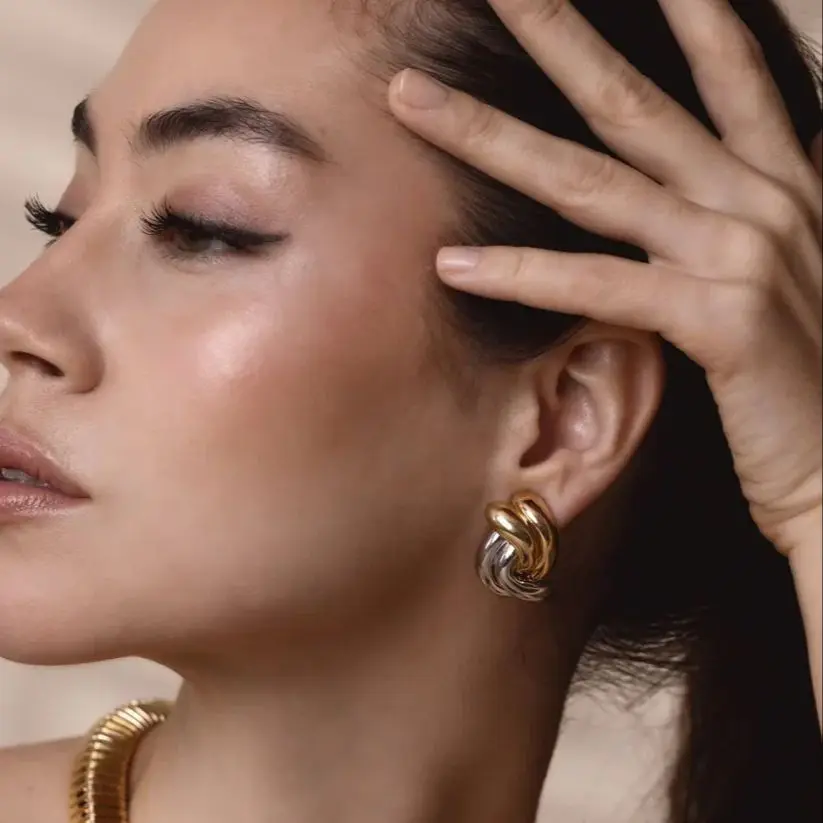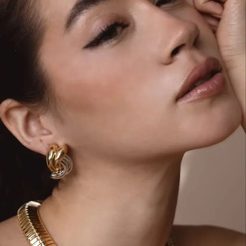 - Designed for women who love modern, minimalist geometric jewelry, these earrings feature a chic oval shape with a sleek dual-tone finish for a striking appearance.