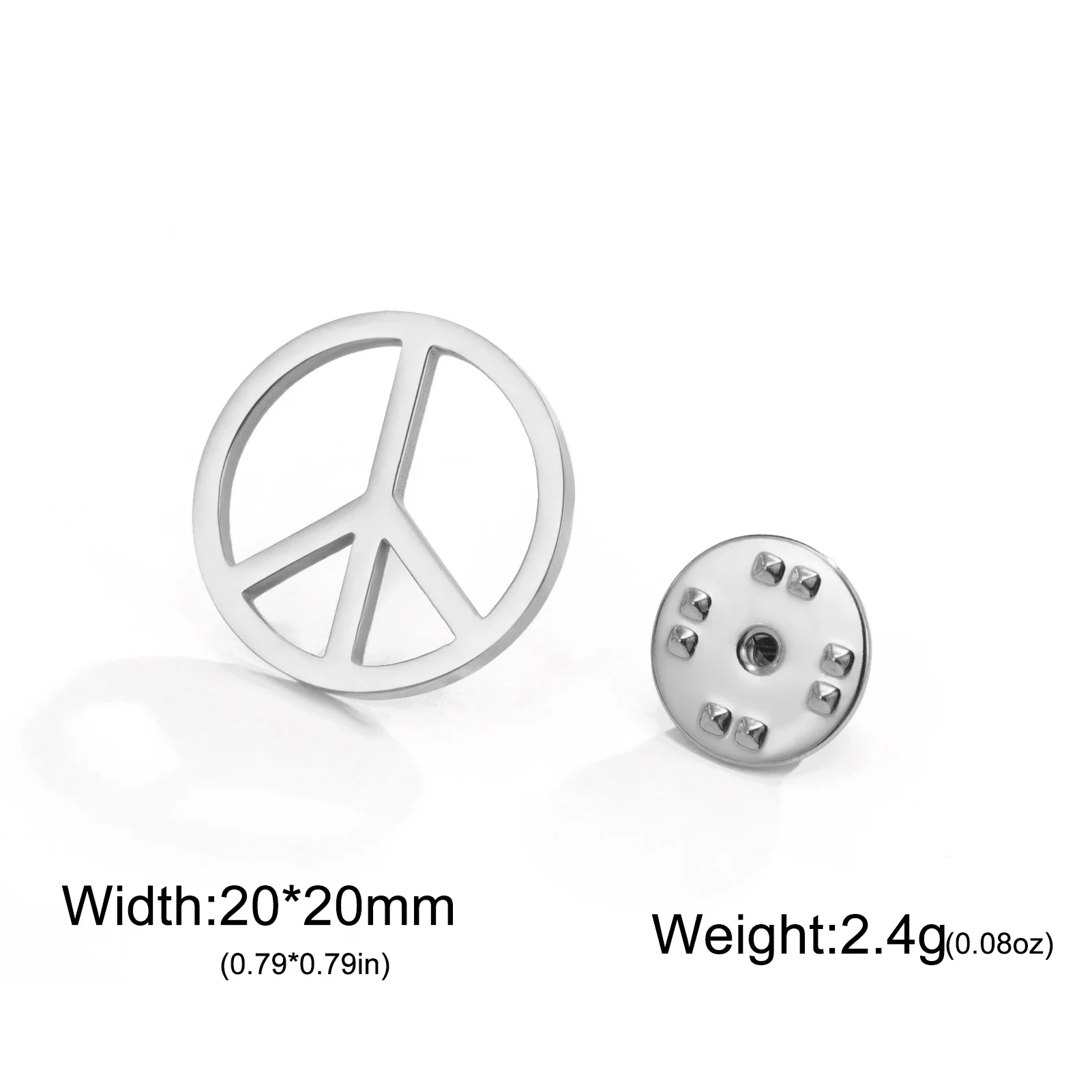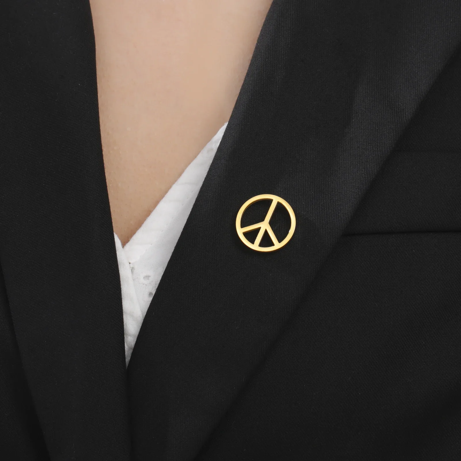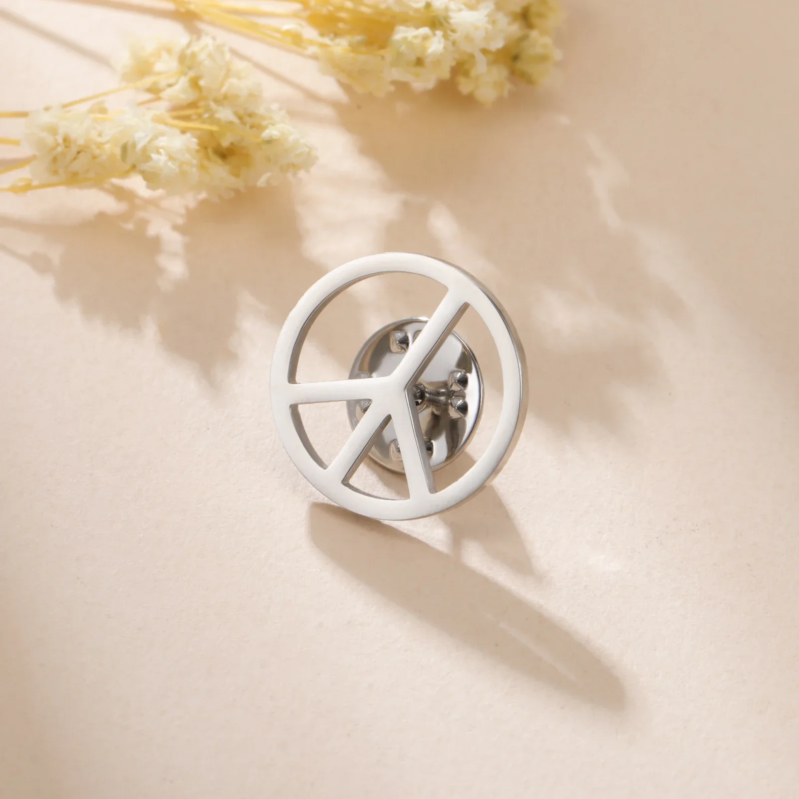 Add a meaningful touch to your everyday style with this sleek, stainless steel peace symbol badge. Designed with a modern aesthetic, it reflects sophistication through its polished metallic finish. Available in classic silver or luxurious 18k gold-plated tones, this badge combines minimalist charm with timeless appeal. Its durable construction ensures resistance to rust, corrosion, fading, acids, and alkalis, making it perfect for daily wear and long-term use. Whether worn on a blazer, lapel, or accessory, this badge subtly communicates your commitment to peace and harmony while elevating your look with its clean lines and refined craftsmanship. A versatile piece, it seamlessly transitions from casual to formal settings, embodying your values with confidence and style.