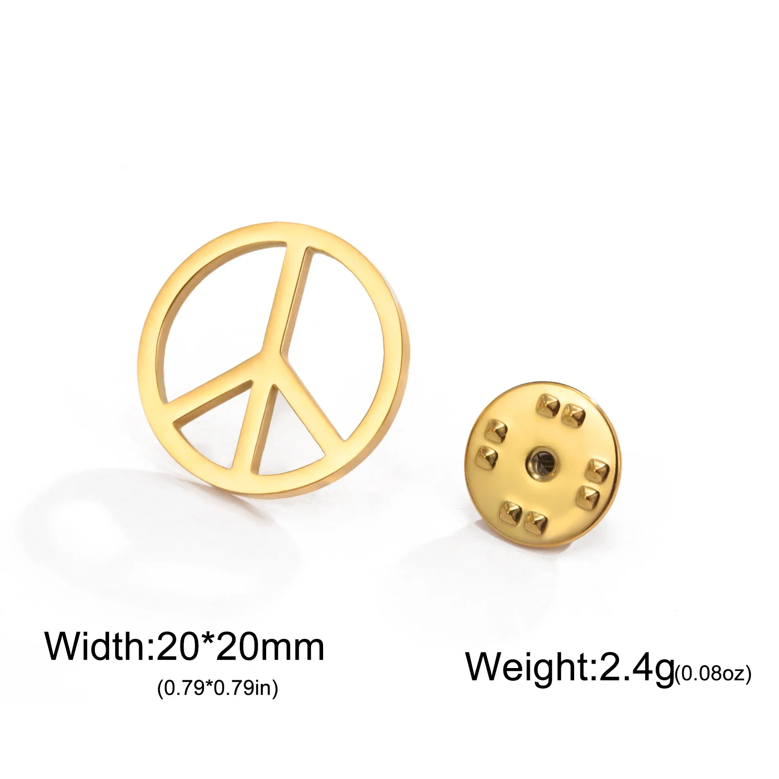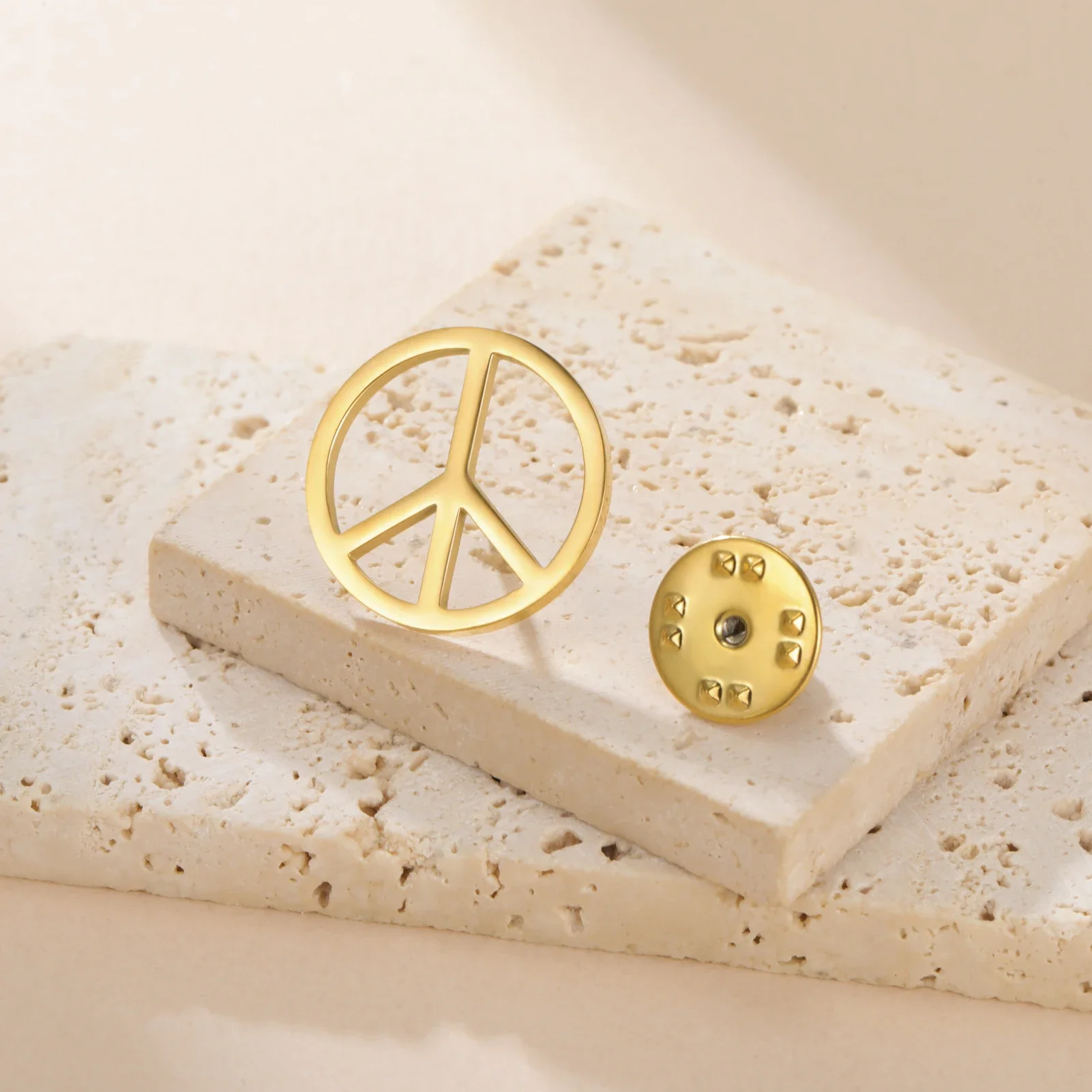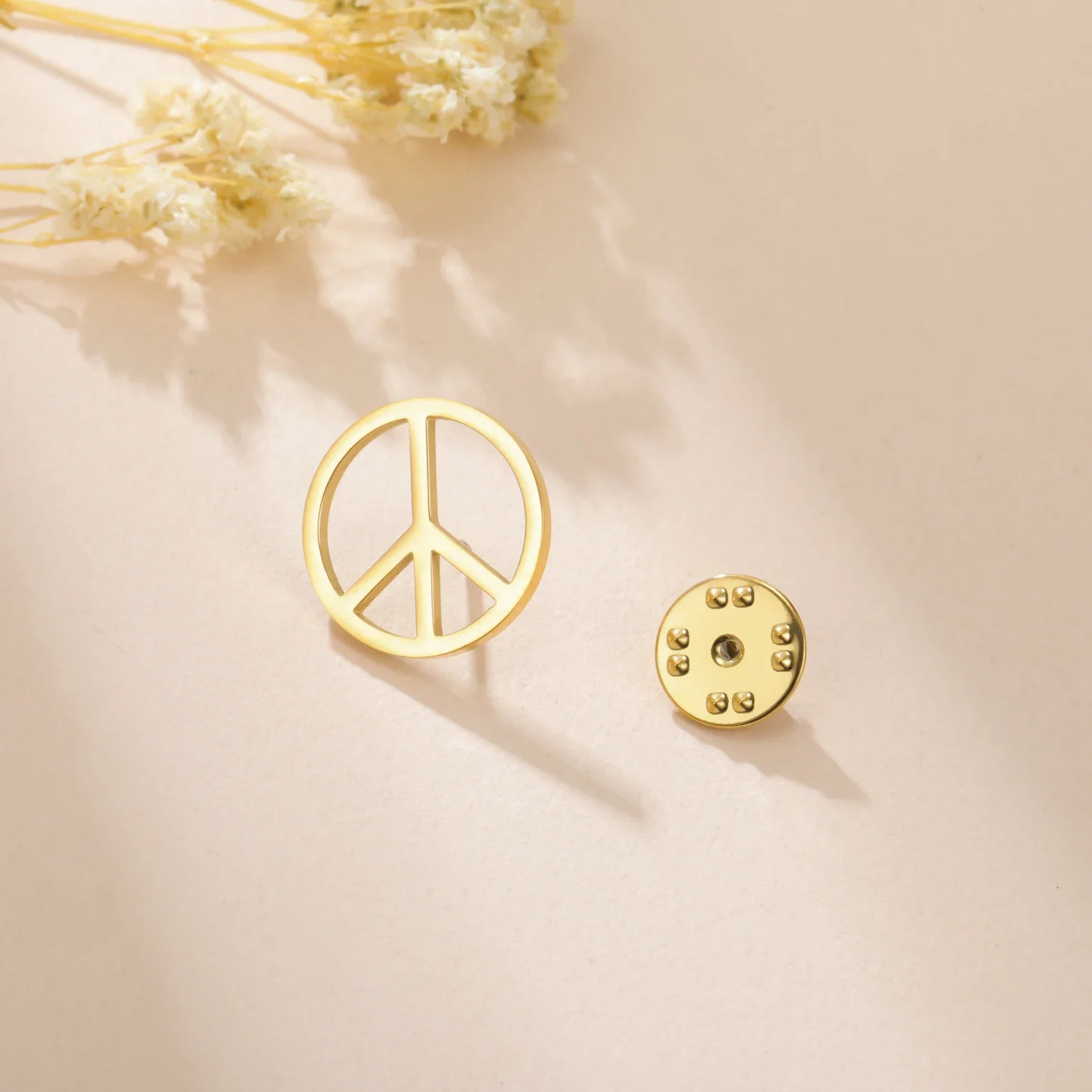Add a meaningful touch to your everyday style with this sleek, stainless steel peace symbol badge. Designed with a modern aesthetic, it reflects sophistication through its polished metallic finish. Available in classic silver or luxurious 18k gold-plated tones, this badge combines minimalist charm with timeless appeal. Its durable construction ensures resistance to rust, corrosion, fading, acids, and alkalis, making it perfect for daily wear and long-term use. Whether worn on a blazer, lapel, or accessory, this badge subtly communicates your commitment to peace and harmony while elevating your look with its clean lines and refined craftsmanship. A versatile piece, it seamlessly transitions from casual to formal settings, embodying your values with confidence and style.
