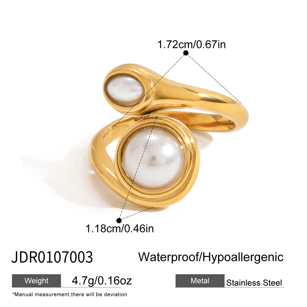 Keys features of the this Fashion Gold Stainless Steel Pearl Ring