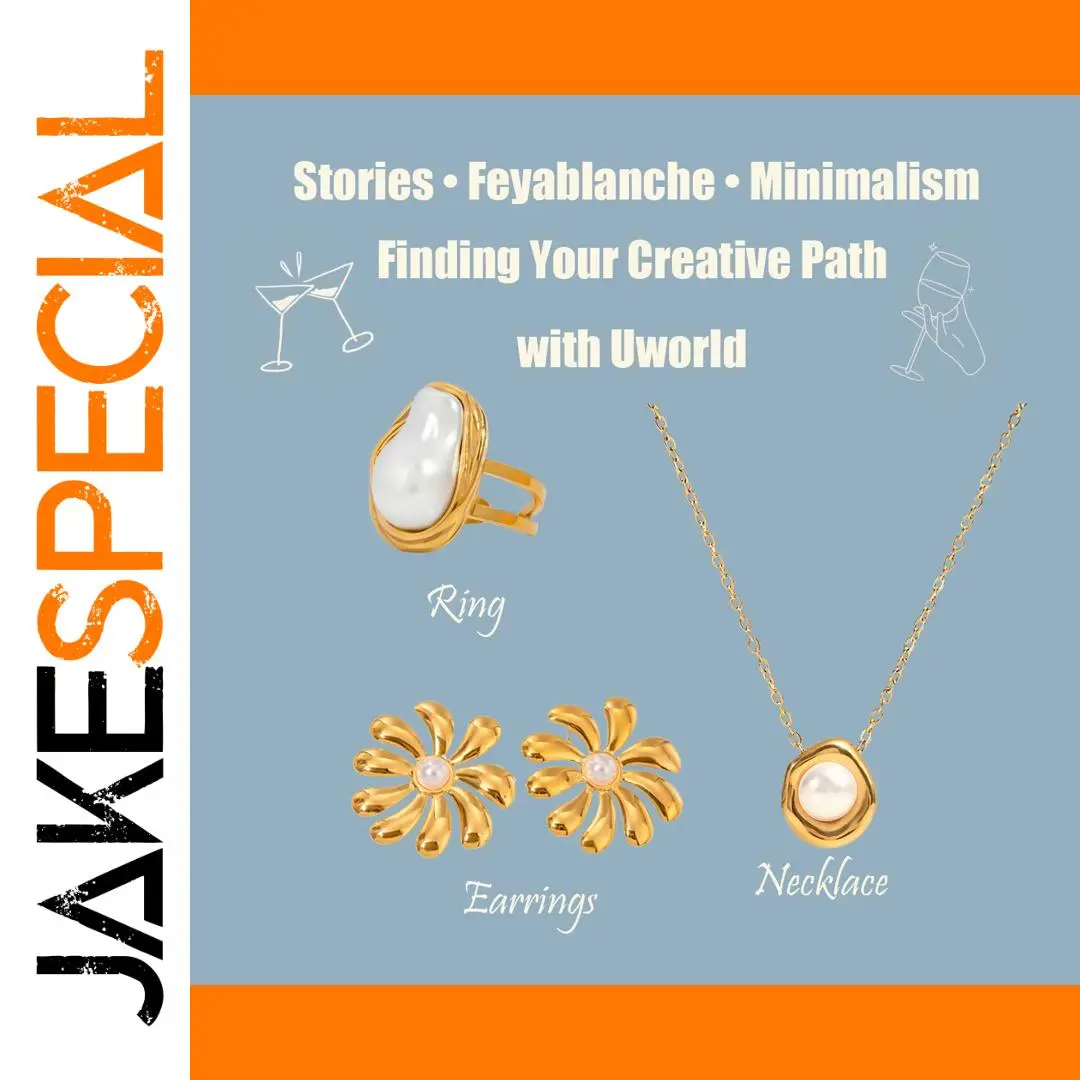 Elevate your style with this stunning 3-piece pearl jewelry set crafted from stainless steel with a durable PVD gold finish, ensuring long-lasting color resistant to fade, scratch, and water. The elegant necklace features a delicate, thin chain with a luminous white pearl pendant, while the floral-themed earrings showcase small white pearls in a cheerful, rounded petal design. The bold ring displays an irregularly shaped white pearl in a sleek, wide gold band for a modern statement. Weighing approximately 15 grams, this trendy set is perfect for women seeking luxurious yet playful accessories for special occasions or parties, combining floral charm with contemporary sophistication.