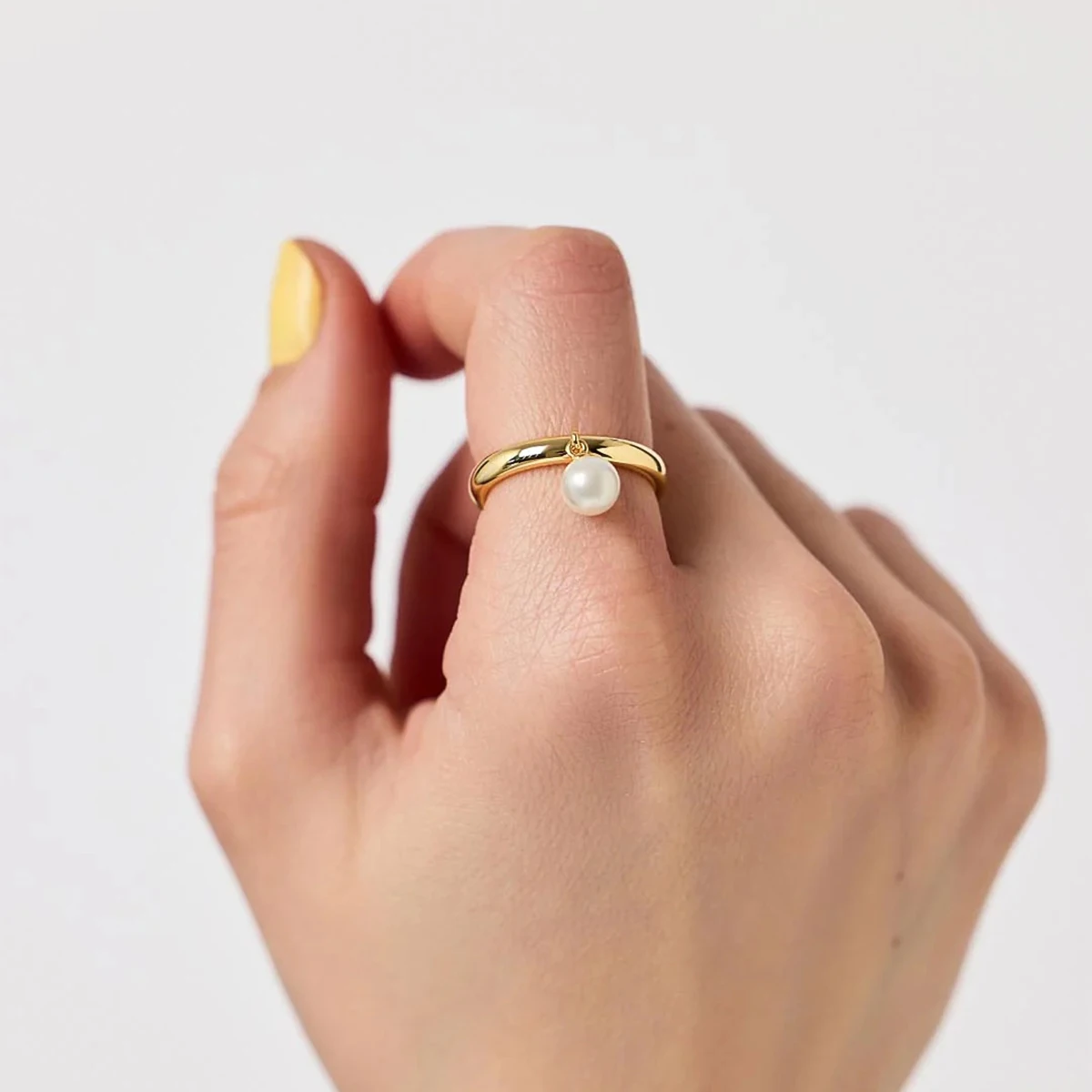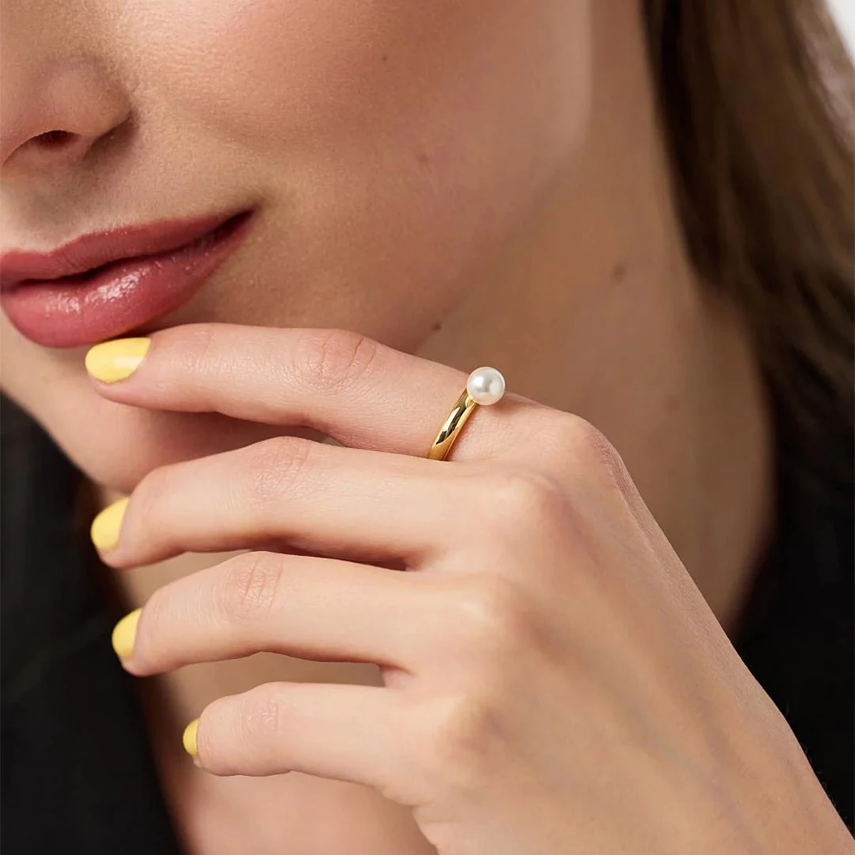 - The lustrous natural pearl, with a lustrous surface and subtle iridescence, beautifully captures light, making every glance at the ring a moment of refined beauty.