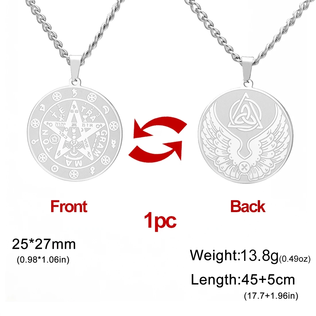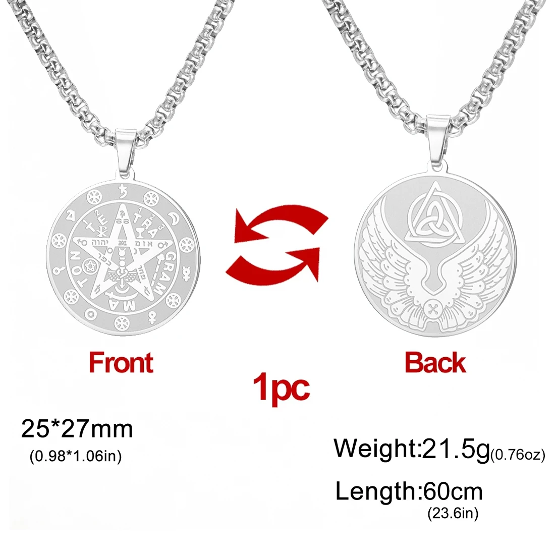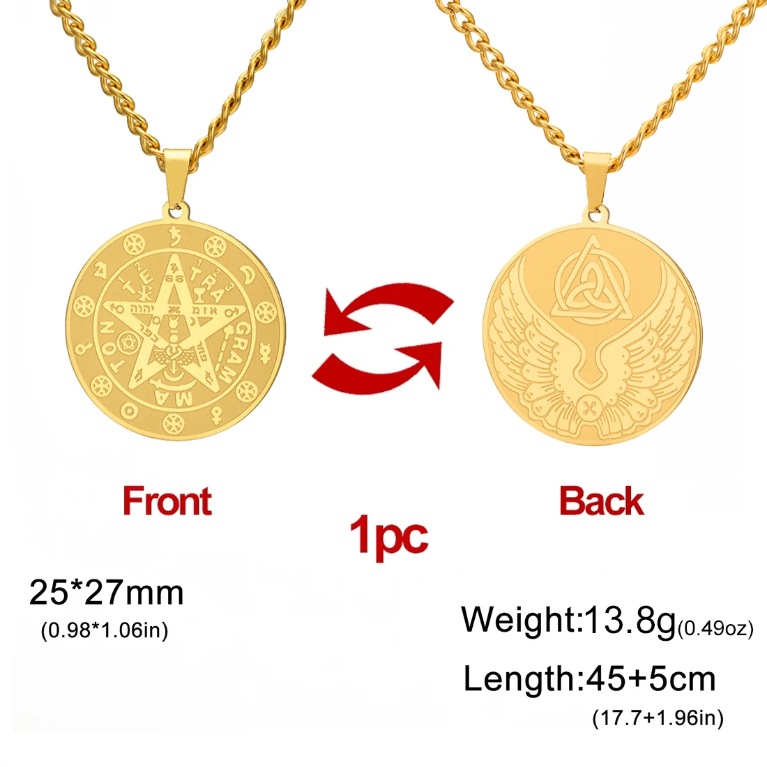 - The pendants are approximately 25mm by 27mm, featuring detailed engraving of a pentagram symbol with Hebrew characters and mystical symbols, perfect for stylish and spiritual expression.