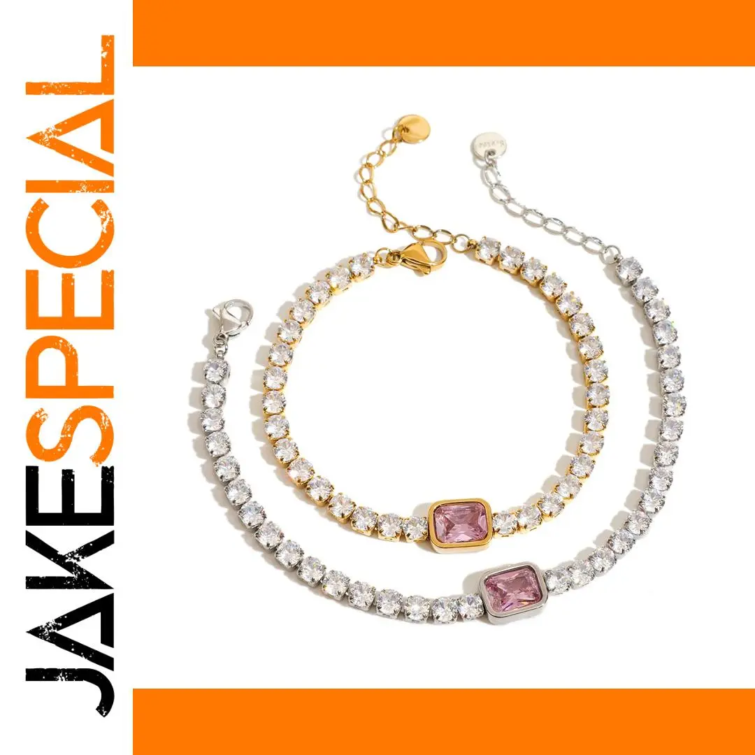 Immerse yourself in the timeless charm of this high-quality stainless steel bracelet, designed for those who appreciate modern elegance. Adorned with vibrant pink square zirconia stones, set in a sleek tension setting, it offers a contemporary yet sophisticated look. The polished, shiny surface reflects light beautifully, enhancing its brilliance and making it perfect for daily wear or special occasions. Crafted for durability, this bracelet is waterproof, tarnish-free, and scratch-resistant. Its adjustable box-with-tongue clasp ensures a comfortable, secure fit, while the hypoallergenic, nickel-free materials make it suitable for sensitive skin. Elevate your jewelry collection with this versatile piece that radiates style and confidence.