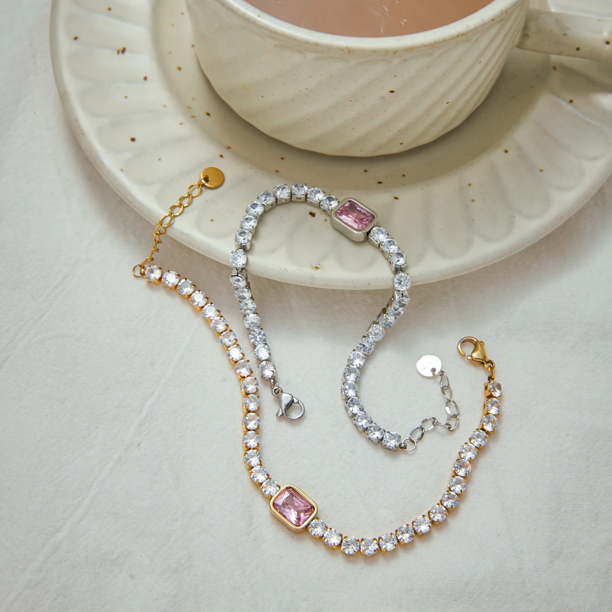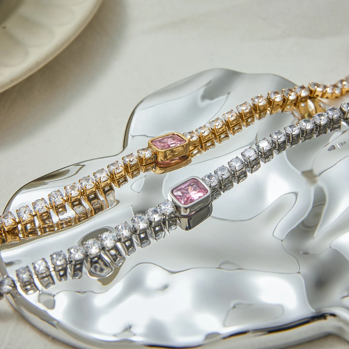 This Elegant Stainless Steel Pink Zirconia Bracelet