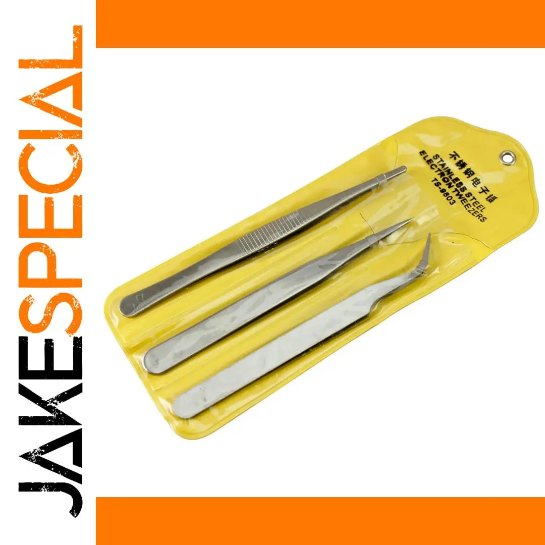 Enhance your precision work with this set of three stainless steel tweezers, measuring 12.1 cm and 12.3 cm in length. The set includes tweezers with straight, blunt, and curved tips, crafted from durable, easy-to-maintain stainless steel, with one made of chromium-nickel stainless steel. Perfect for handling tiny objects, these versatile tools are ideal for technicians, repair specialists, plumbers, and builders, suitable for use in homes, hospitals, manufacturing, or repair shops. The sleek, minimalist design with smooth metallic finishes reflects professional craftsmanship, making these tweezers a reliable addition to any detailed task arsenal.