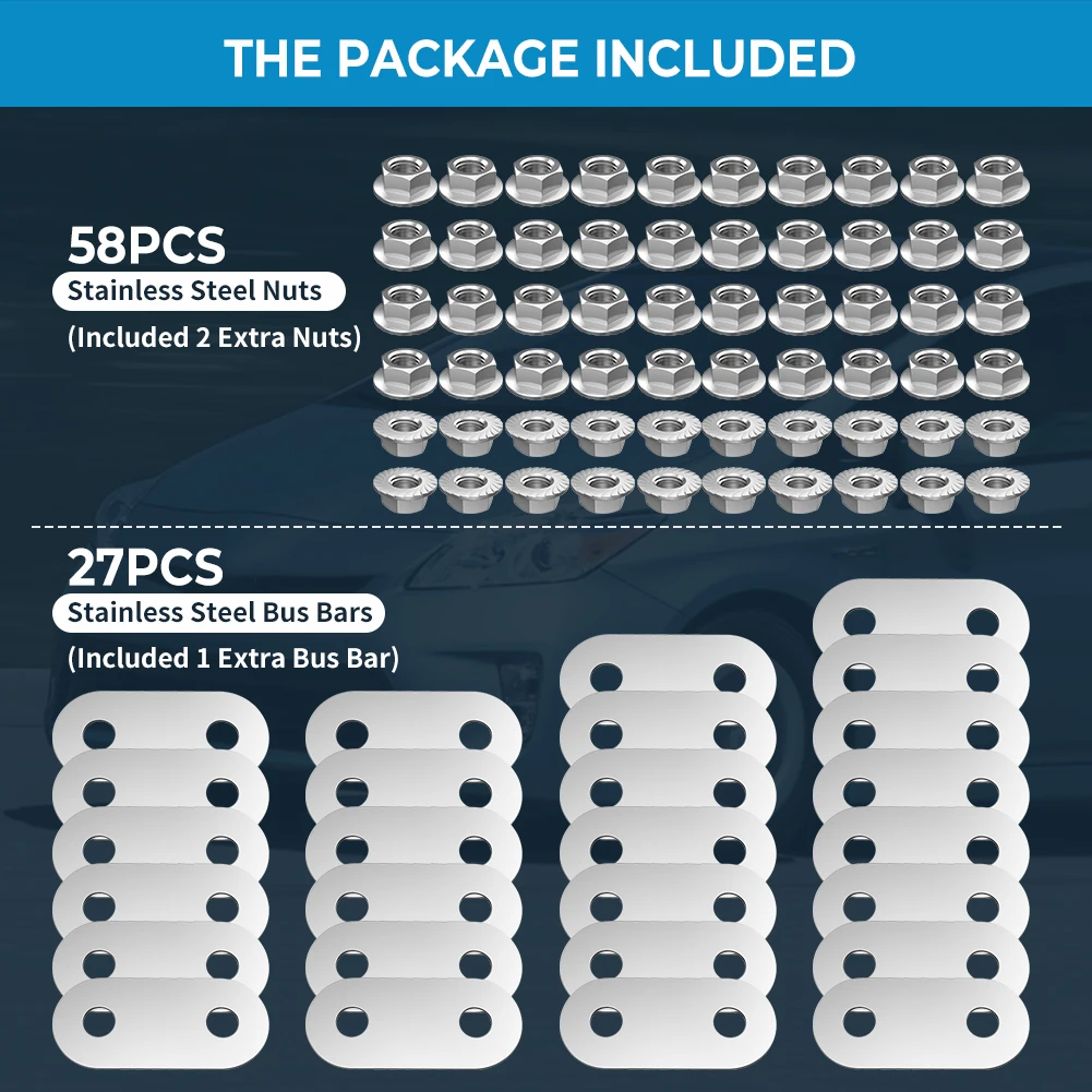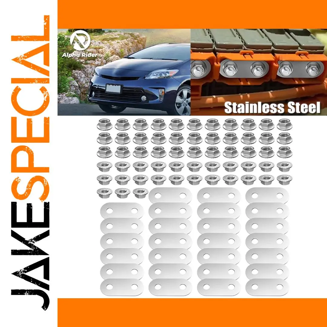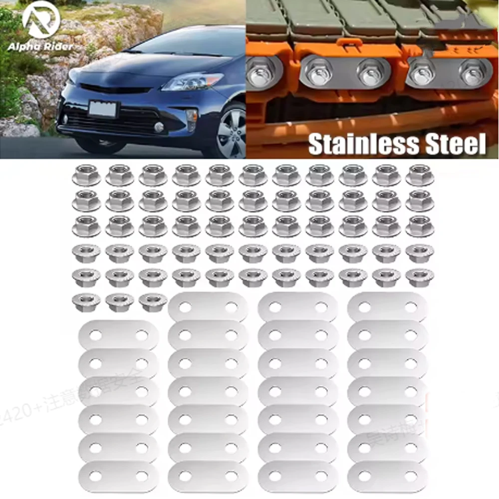 Upgrade your Toyota Prius with this set of stainless steel hybrid battery bus bar stud nuts, compatible with models from 2004 to 2015. The package includes 27 nickel-plated bus bars and 58 nickel-plated nuts, offering superior corrosion resistance compared to factory copper components. Crafted from high-quality stainless steel, these non-refurbished parts ensure durability and reliable electrical connections. CE certified for quality assurance, this lightweight 0.2 kg set is ideal for replacements or repairs in hybrid battery systems, providing an organized and long-lasting solution to maintain optimal performance of your Prius.