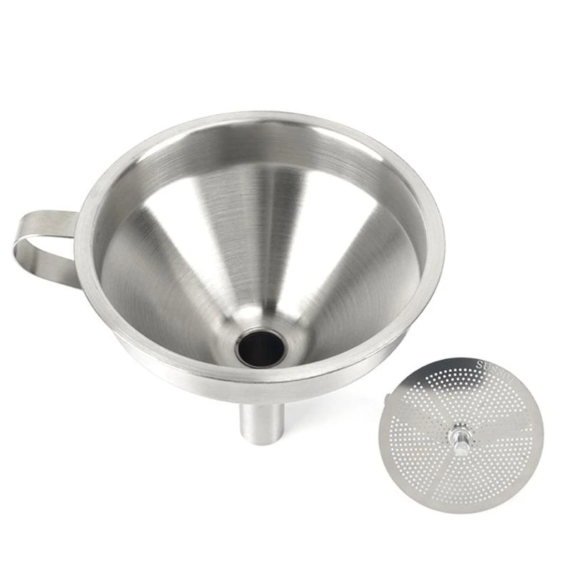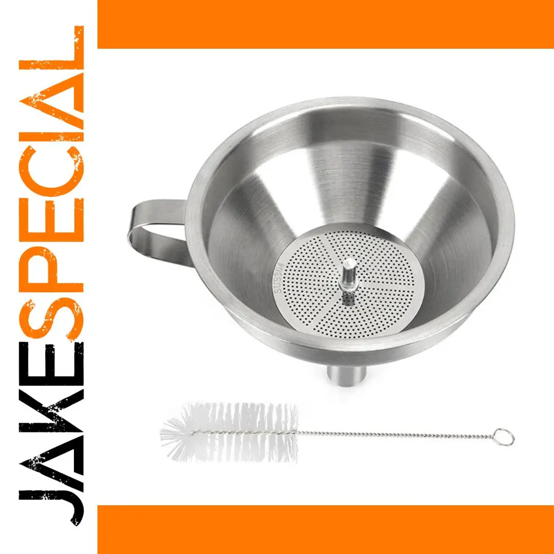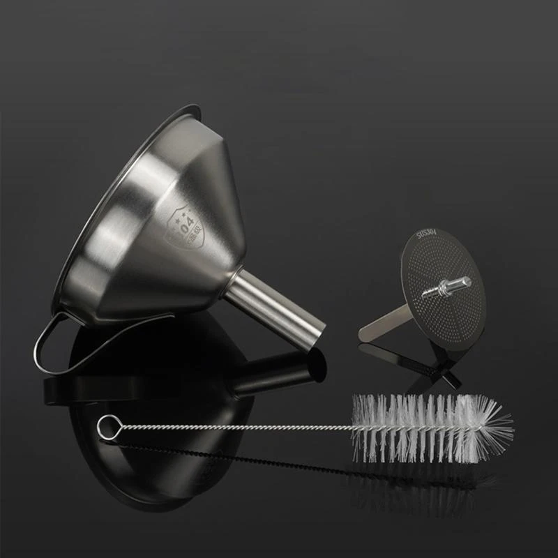- Equipped with a dedicated cleaning brush featuring a twisted wire handle and soft bristles, enabling thorough cleaning of the strainer and funnel interior after each use.
