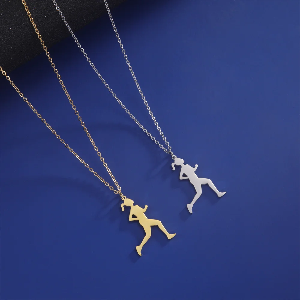 Experience the dynamic energy of this fashionable unisex jewelry piece that captures the spirit of active lifestyle. Crafted from high-quality stainless steel, this necklace features a sleek pendant shaped like a running girl with a ponytail, symbolizing movement and vitality. Available in elegant silver and gold tones, it offers a polished, shiny finish that reflects modern style. With an adjustable length from 45 to 50 centimeters, it ensures a perfect fit for any occasion—be it casual outings, parties, or celebrations. Lightweight yet durable, this necklace is hypoallergenic and resistant to rust, corrosion, and fading, making it suitable for everyday wear. Embrace your active persona with this captivating and versatile accessory.