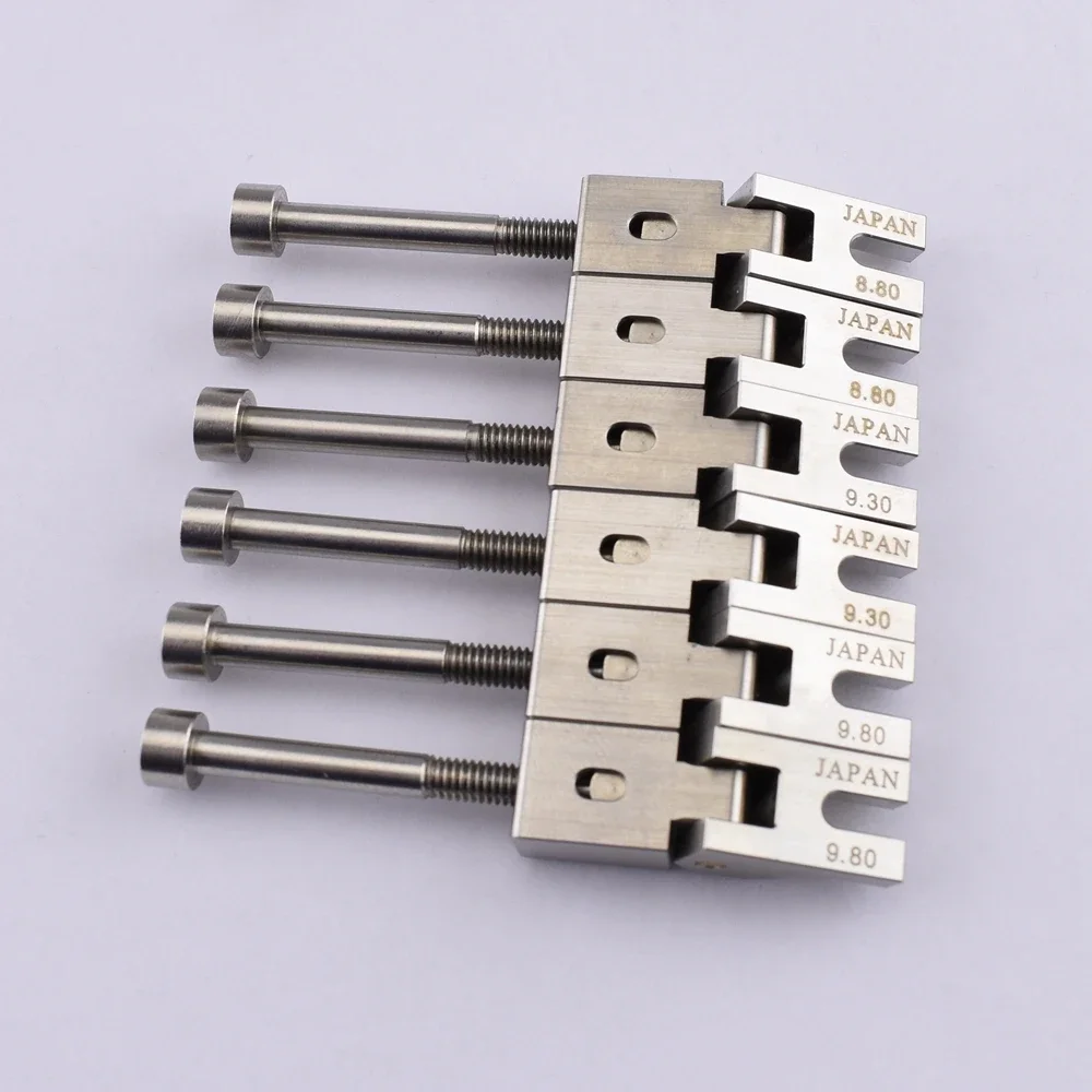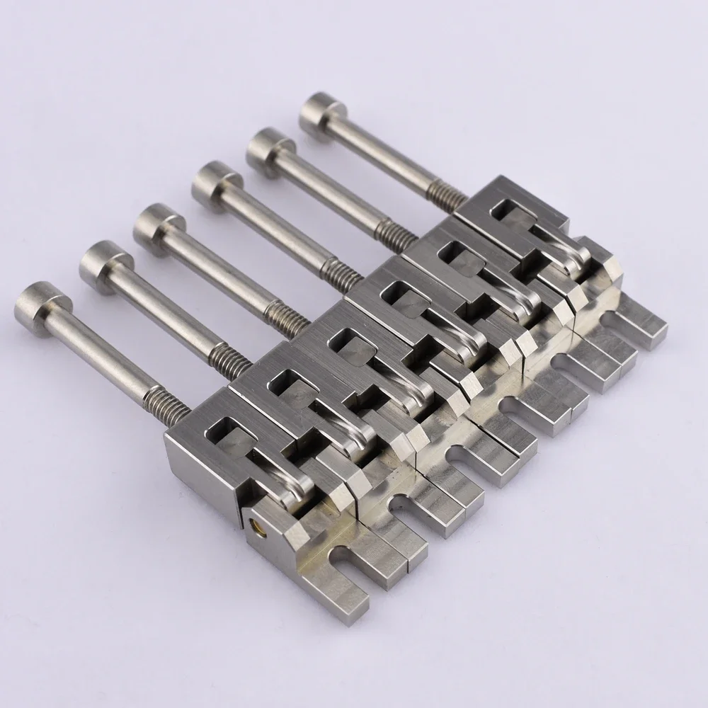 Elevate your guitar playing experience with this Steel Tremolo Bridge Saddle, crafted in Japan for precision and durability. Made from high-quality stainless steel, this saddle is designed for 6/7 string guitars, offering enhanced sound and stability. You'll appreciate the exceptional craftsmanship as you enjoy improved intonation and sustain. Whether you're performing on stage or jamming at home, this bridge saddle transforms your guitar's performance. You've invested in your instrument; now invest in its best components. Feel the difference with every strum and impress your audience with the clarity and richness of your sound.