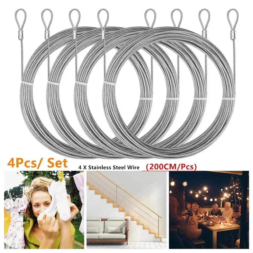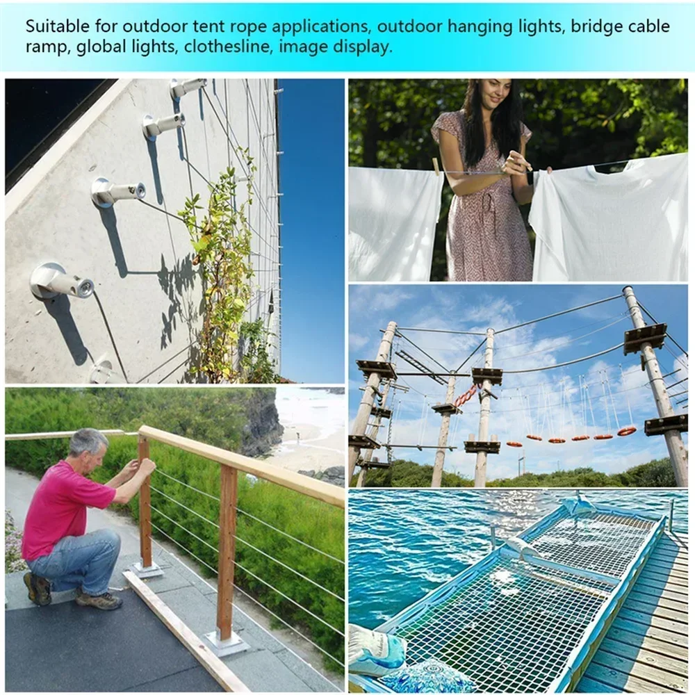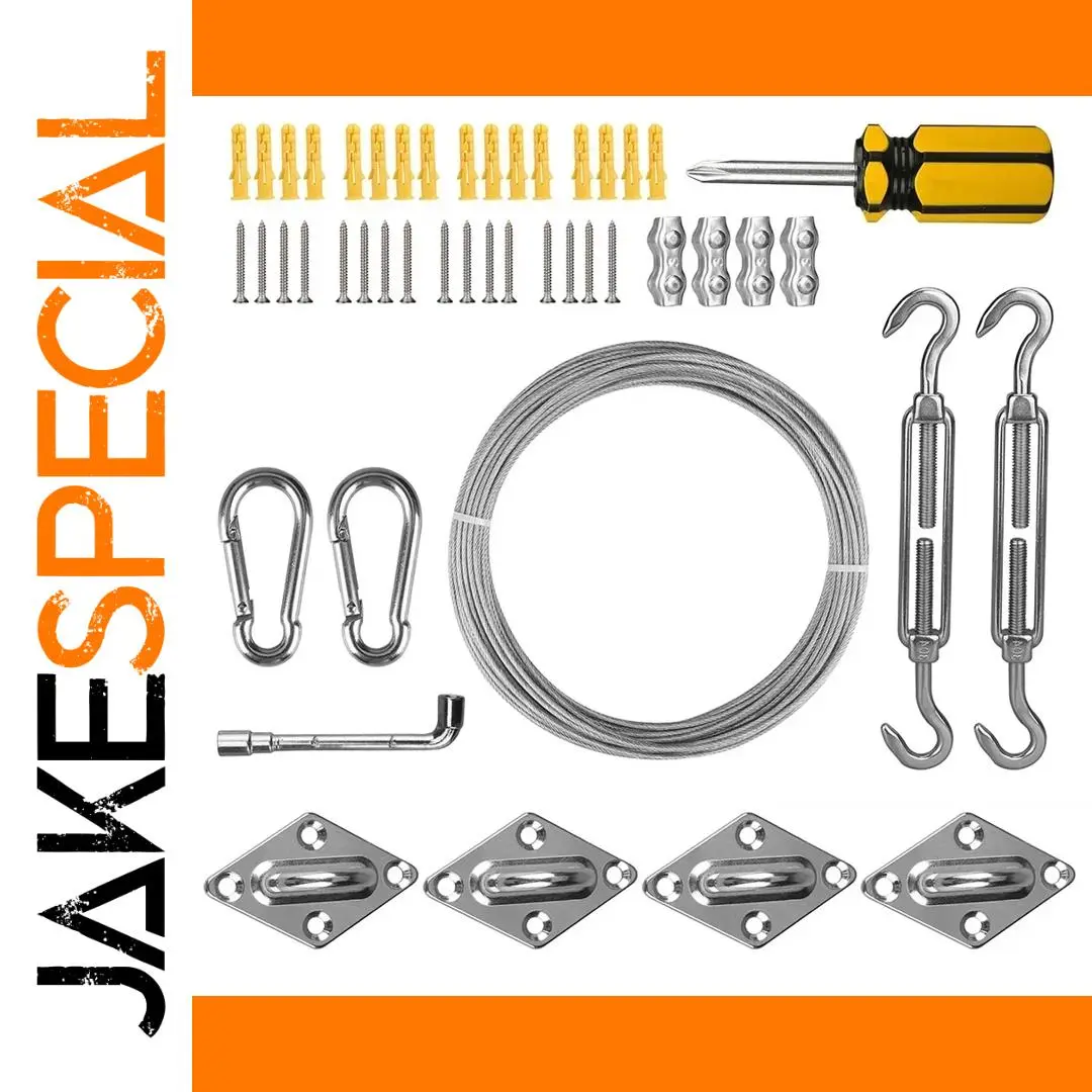 - The set includes a 15-meter stainless steel wire rope, twisted for strength, ideal for tensioning systems on large shade sails or canopies in outdoor environments.