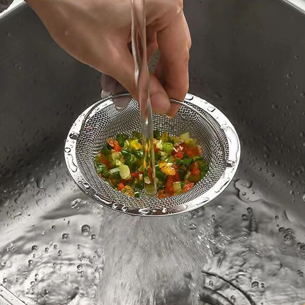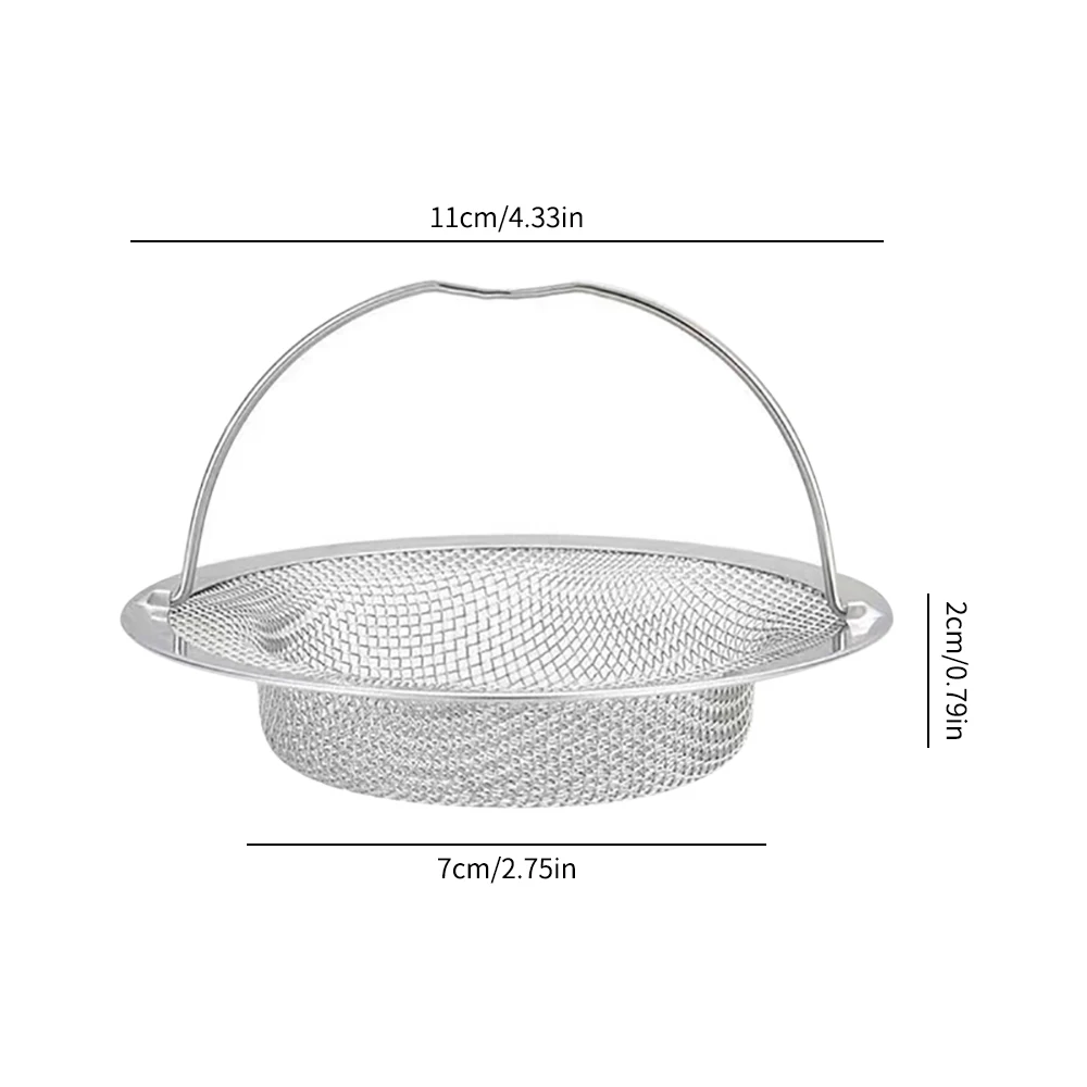 Experience hassle-free sink and bathtub maintenance with this durable stainless steel kitchen sink filter in sleek silver. Designed to catch food residues and hair, it effectively prevents clogs in your kitchen or bathroom. Constructed from high-quality stainless steel, it guarantees long-lasting performance and easy cleaning. Its minimalist, polished appearance complements modern interiors, while its tightly woven mesh ensures effective filtration without obstructing water flow. Suitable for various household applications, this versatile filter is a reliable addition to your daily routine, helping you maintain a clean and clog-free environment effortlessly.