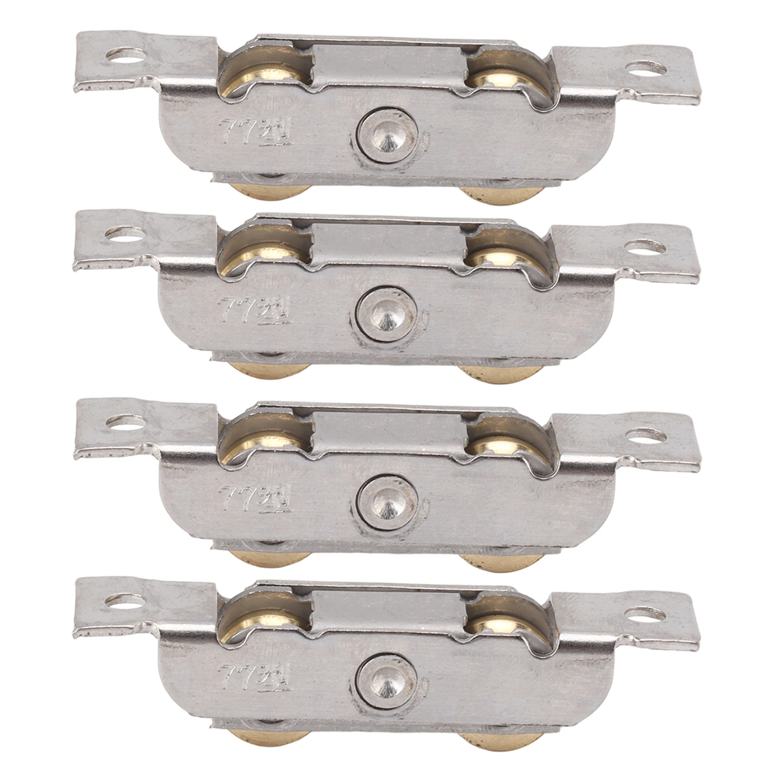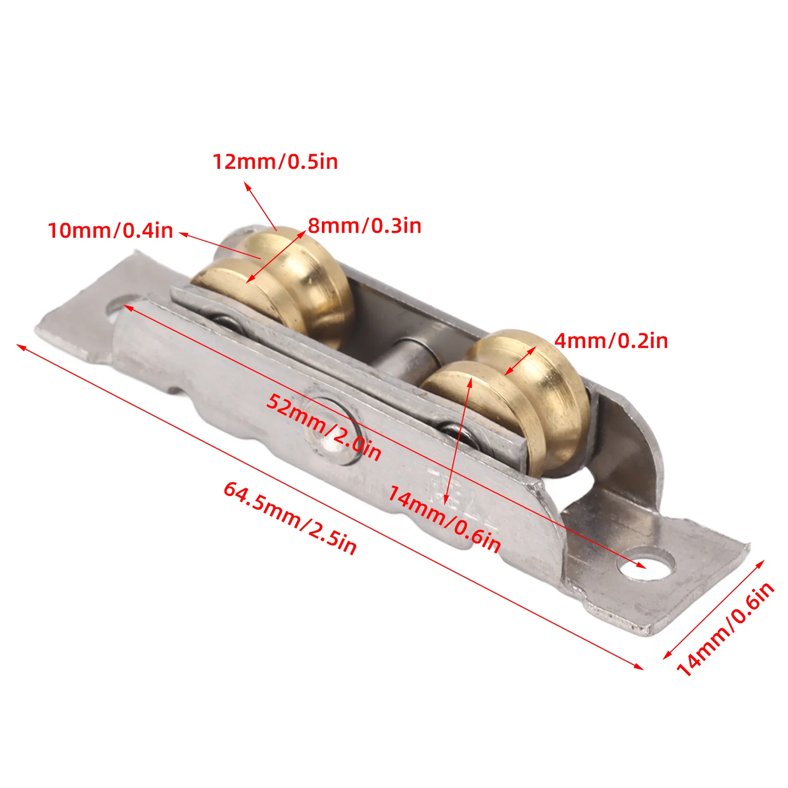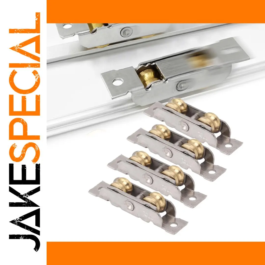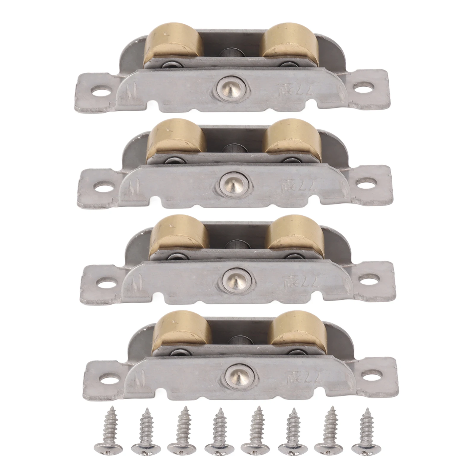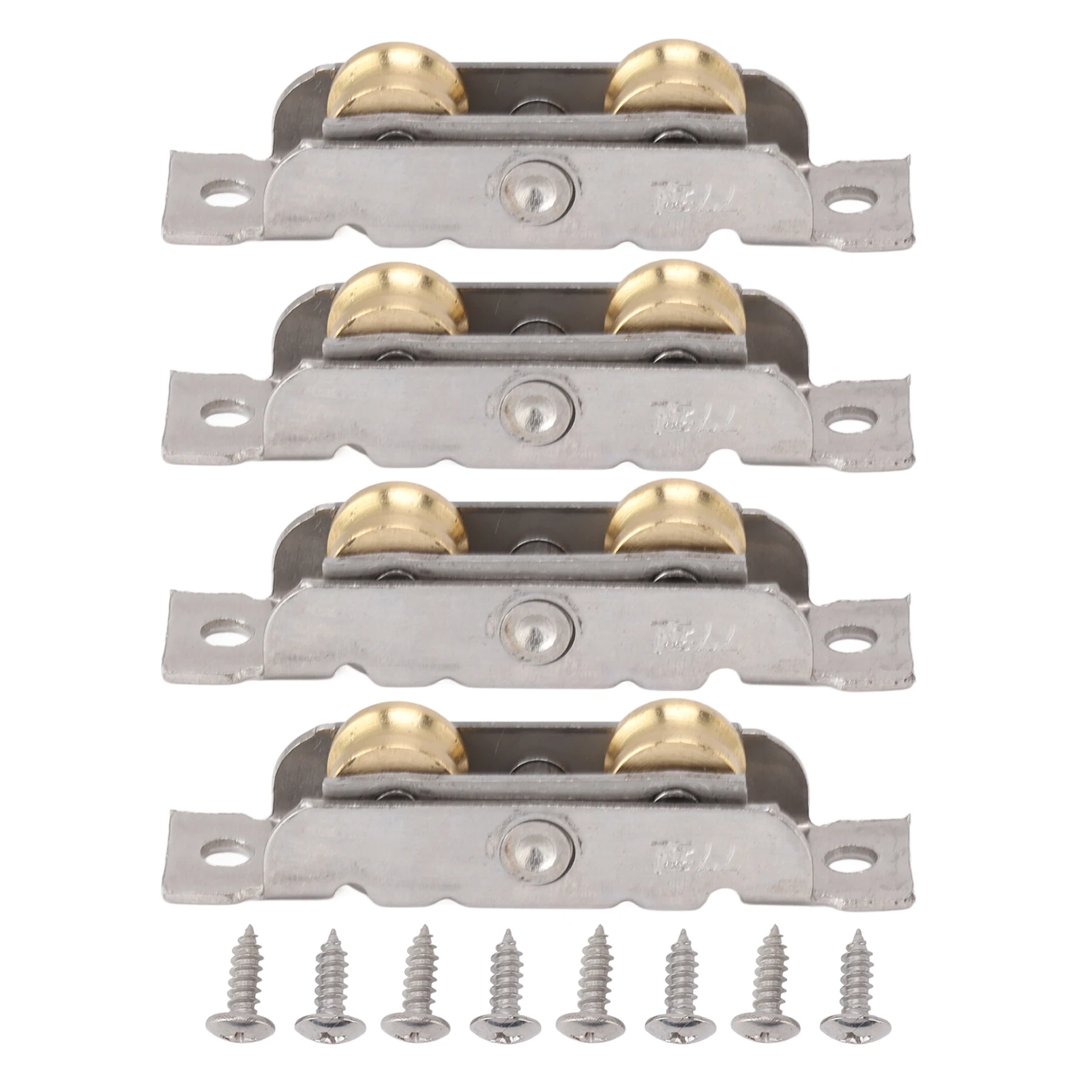 Enhance your sliding door performance with this set of four durable roller assemblies crafted from stainless steel and copper, weighing approximately 137 grams each. Featuring copper and stainless steel ball bearings, these rollers ensure smooth, quiet operation and long-lasting durability. The set includes eight screws and offers two wheel styles: concave and flat, compatible with most sliding doors and windows. Designed for effortless installation, these high-load-capacity rollers provide reliable support and improved functionality, blending industrial strength with polished, modern aesthetics for a seamless upgrade to your door hardware.