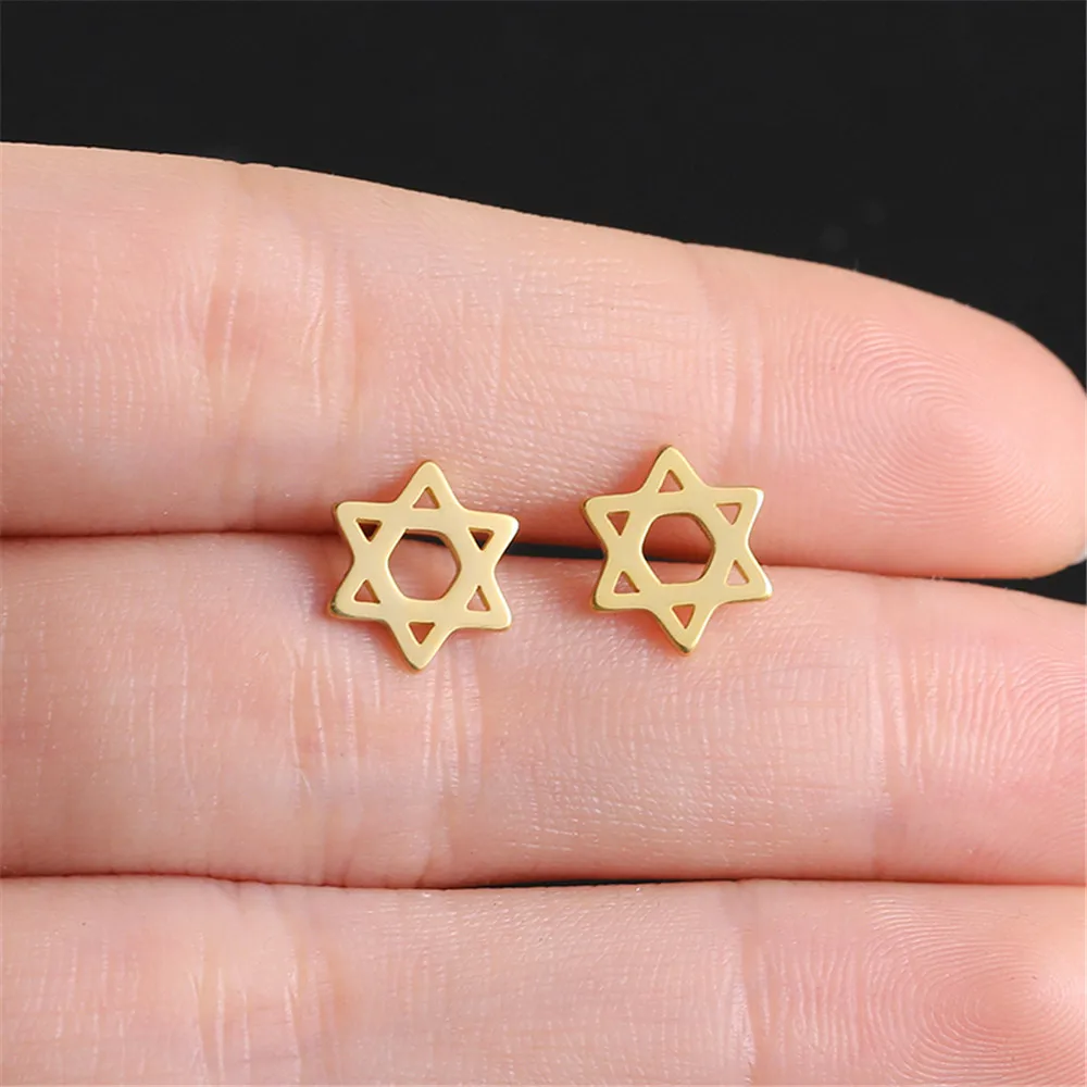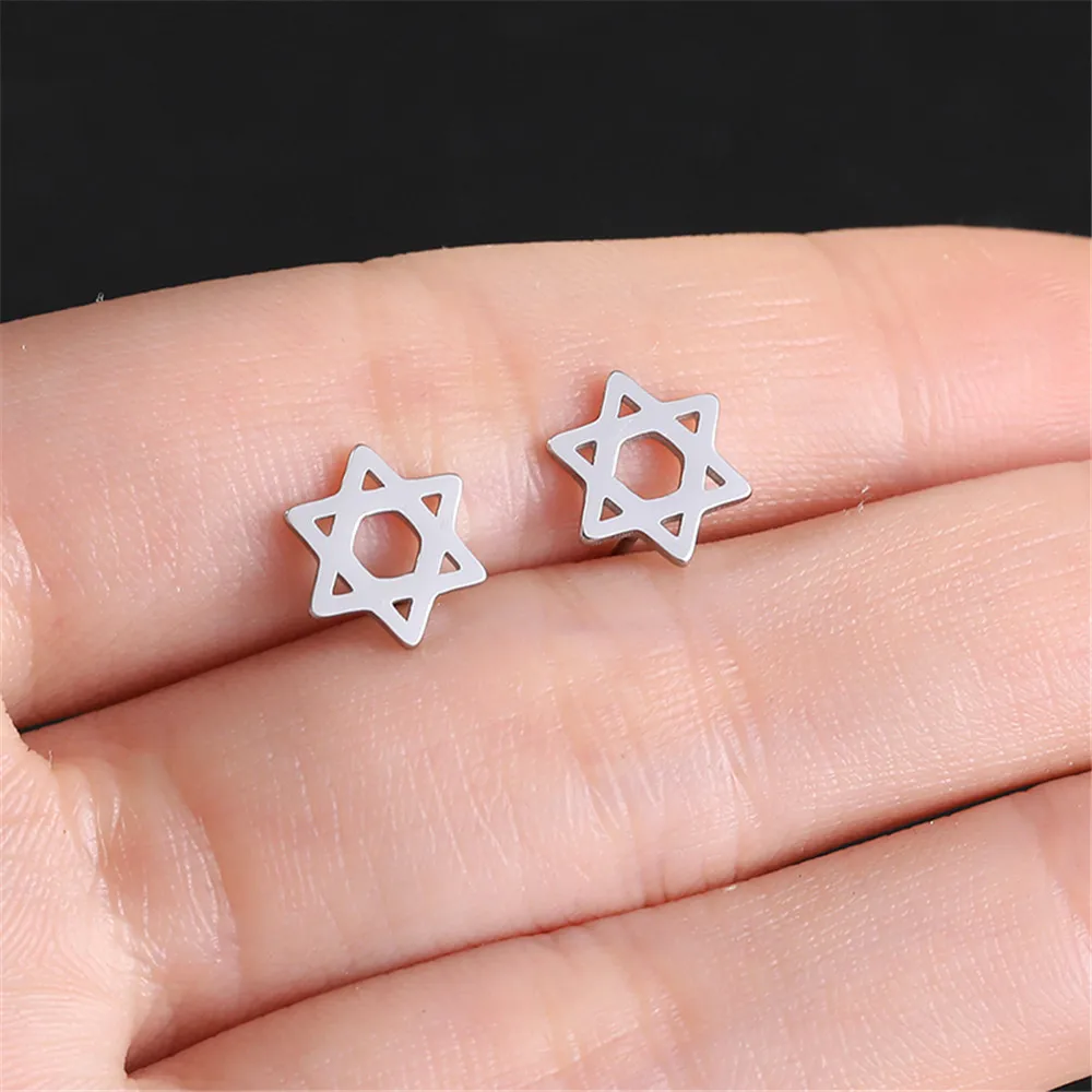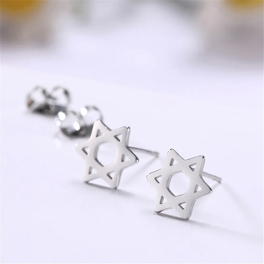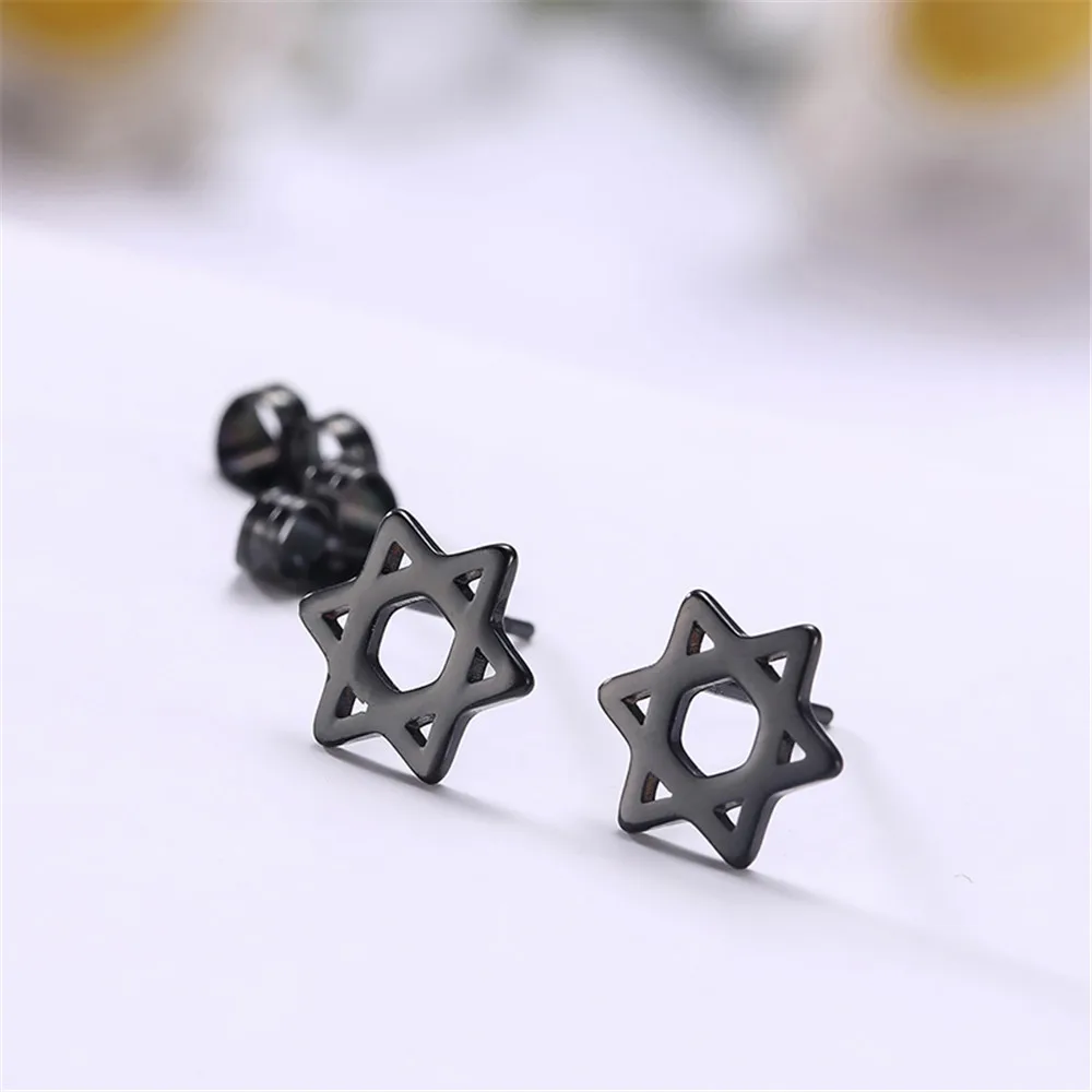 Elevate your style with these stainless steel Star of David earrings, measuring approximately 10mm in diameter and 1.5mm in thickness. Crafted from durable, high-quality stainless steel, they resist rust, corrosion, fading, and deformation. Featuring a sleek geometric design with hollow centers and sharply defined edges, these earrings come in three finishes: shiny silver, polished gold-tone, and matte black, offering versatile elegance for any occasion. Their minimalist yet modern aesthetic makes them perfect for daily wear, and the compatible push-back fastenings ensure secure, comfortable fit. Add a meaningful touch to your jewelry collection with these timeless, long-lasting accessories.