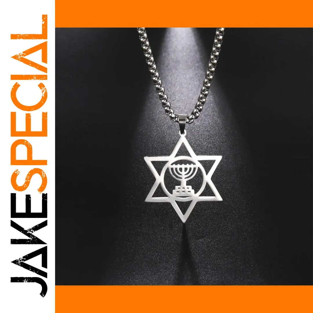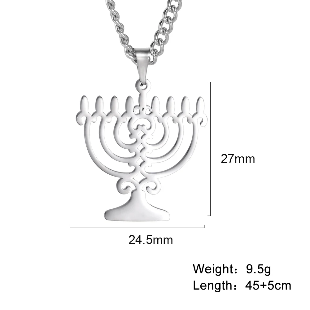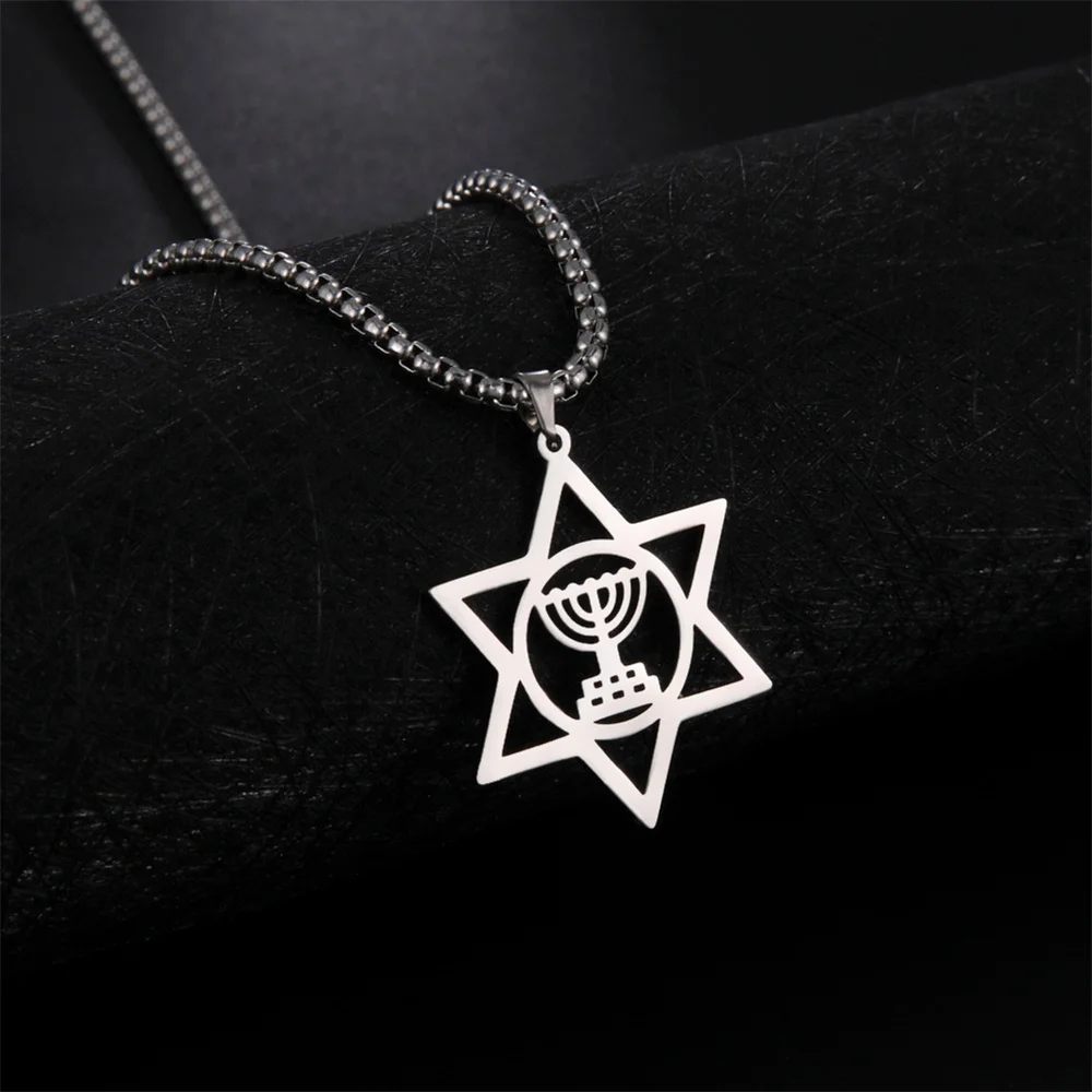 Imagine yourself wearing this stunning jewelry piece that seamlessly blends cultural symbolism with modern elegance. Crafted from durable stainless steel, this pendant features a sleek Star of David with a stylized Menorah at its center, symbolizing faith and tradition. The polished, reflective surface enhances its minimalist design, making it suitable for everyday wear or special occasions like parties, weddings, or religious celebrations. Available in four beautiful colors—silver, gold, rose gold, and black—it complements any attire and adds a subtle touch of spirituality and style. Its size of 28mm by 34.3mm makes it a focal point without overwhelming, offering both elegance and meaningful symbolism in a sophisticated package.