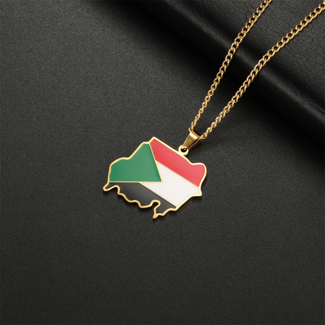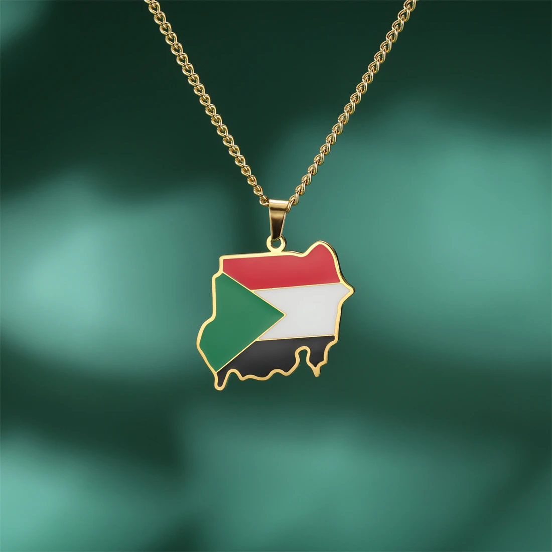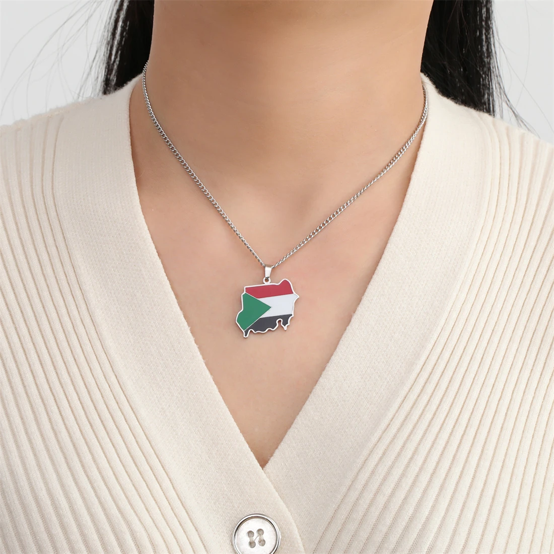 Feel confident wearing this accent piece that elegantly combines country symbolism with modern fashion. It’s perfect for celebrating Sudanese heritage during special events or adding a meaningful touch to your daily wardrobe. Whether as a gift or a personal statement, this necklace will resonate with your patriotic spirit and sense of style. Make your purchase now and embrace your national pride with this stunning stainless steel accessory crafted for timeless wear.