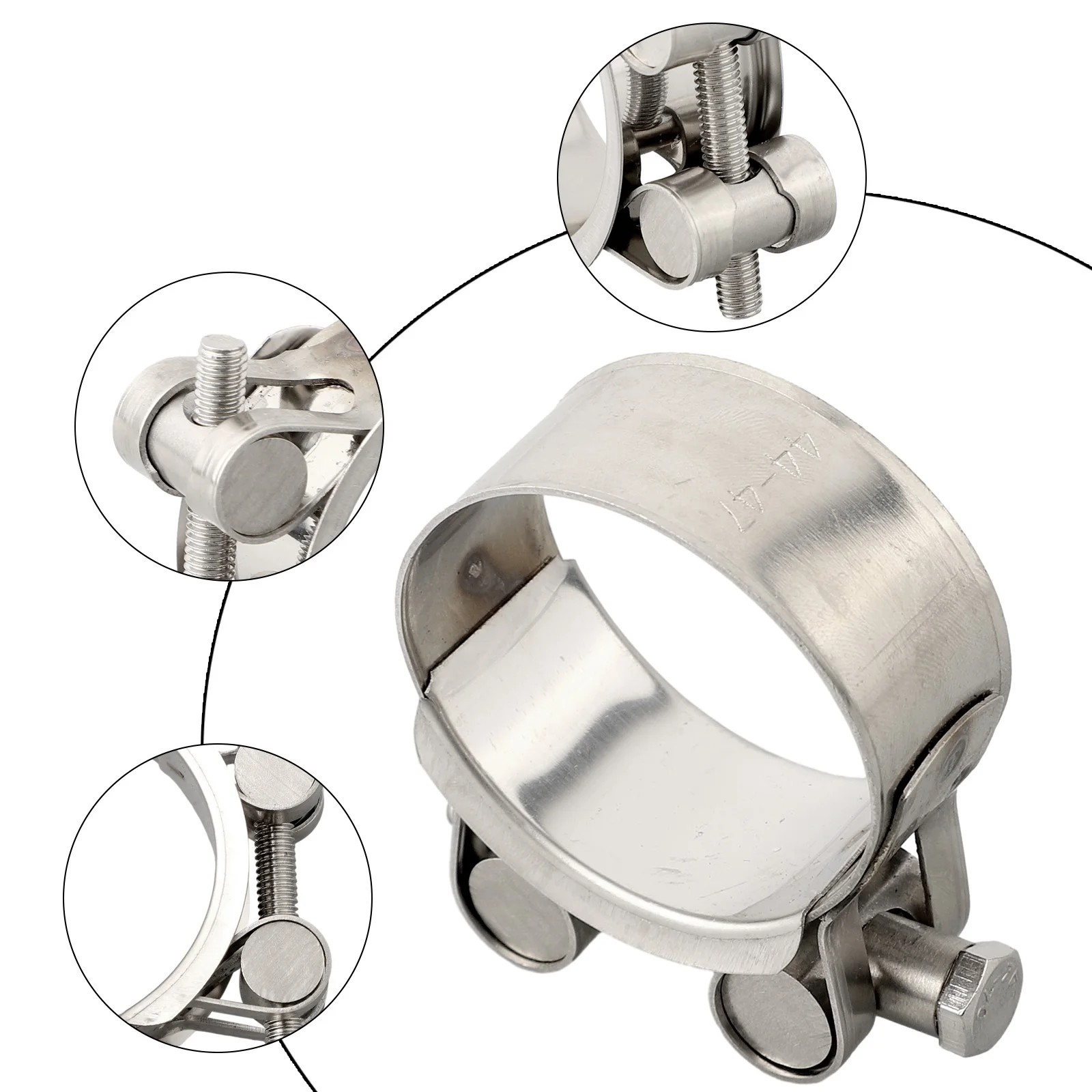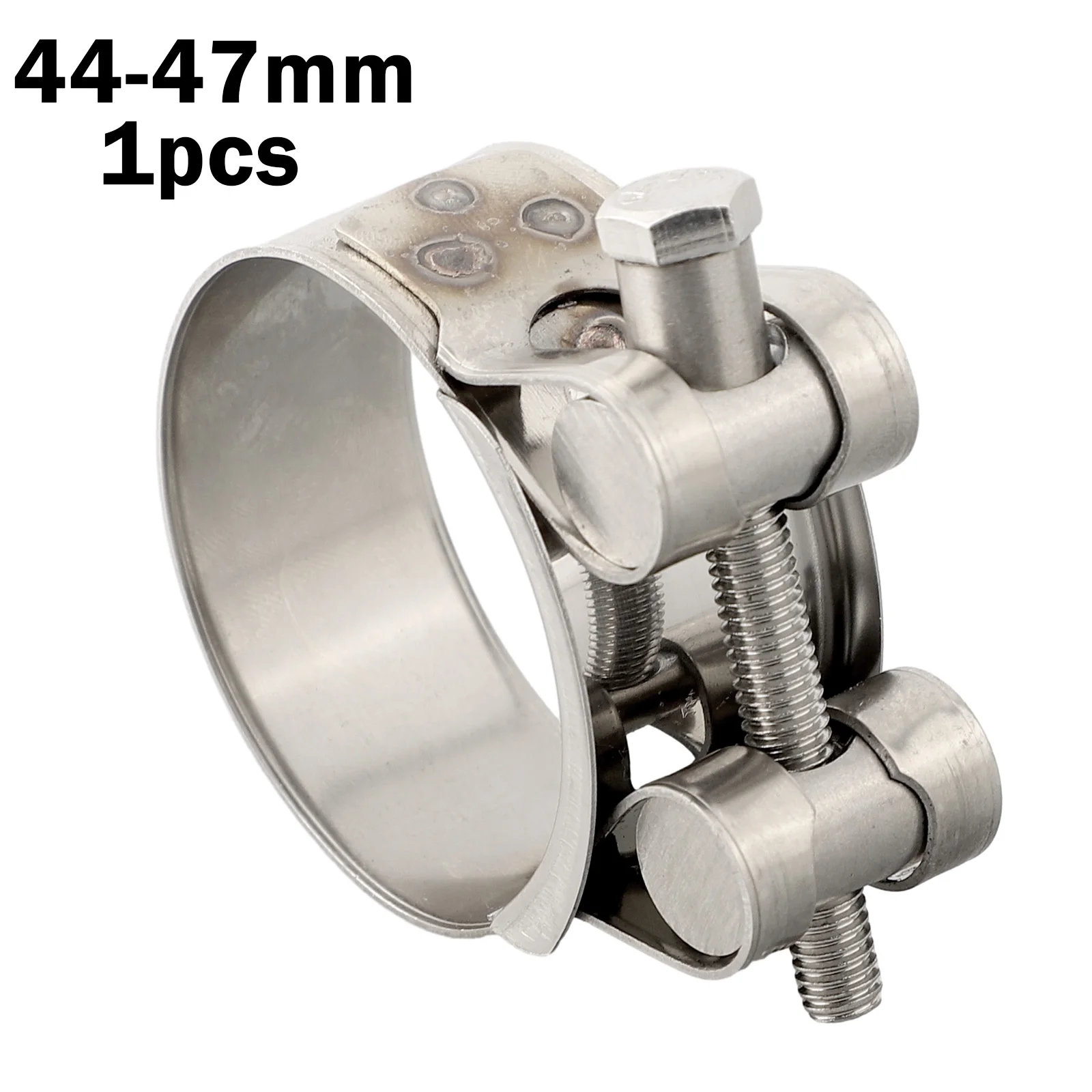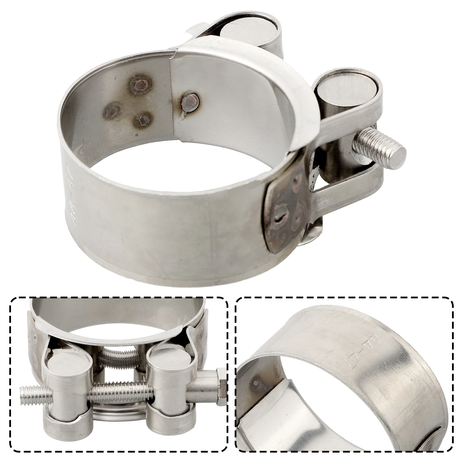 Imagine securing your turbine pressure hoses or high-pressure engine cooling hoses with confidence using this durable stainless steel T-bolt clamp. Its shiny silver finish and robust construction make it perfect for demanding industrial or automotive applications. Designed with a heavy-duty T-bolt mechanism and a small set screw, this clamp provides a secure, tight fit around hoses and pipes, preventing leaks or disconnections. Its simple yet efficient design ensures reliability under high-pressure conditions. Whether you're working on engine air intake systems or exhaust pipes, this clamp offers a professional-grade solution. Its versatile size options from 44mm to 79mm diameter accommodate a wide range of uses, making it an essential accessory for your vehicle or machinery maintenance.