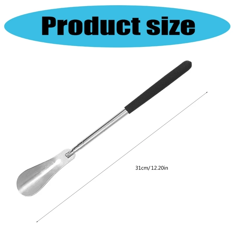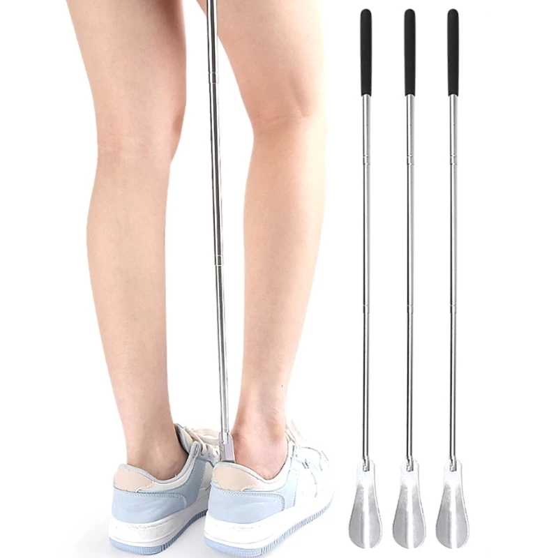 Experience effortless shoe wearing with this stylish telescopic stainless steel shoehorn. Crafted from durable, rustproof stainless steel with a polished silver finish, it combines elegance and practicality. Its elongated, slender design gently curves toward the rounded, oval-shaped head, ensuring smooth guidance into shoes without discomfort. The foldable feature allows easy storage and portability, making it perfect for travel, office, gym, or everyday use. Weighing only 61 grams, this lightweight tool provides a sturdy, break-resistant grip for all shoe sizes. Whether you're a busy professional, senior, or travel enthusiast, this shoehorn helps you slip into footwear comfortably and quickly, enhancing your daily routine with convenience and style.