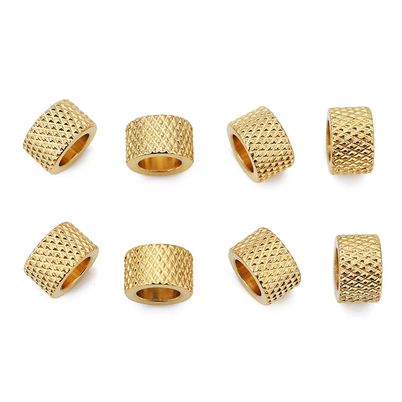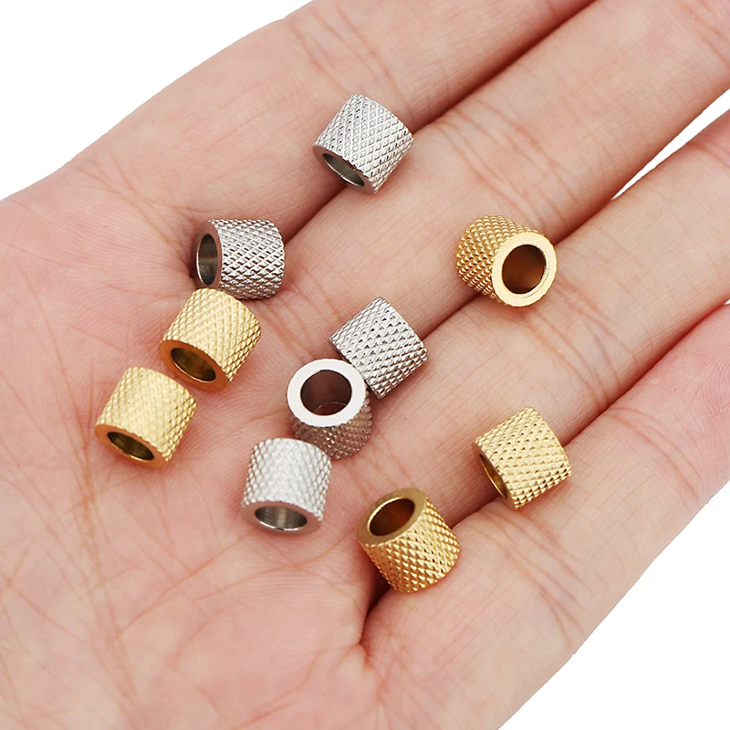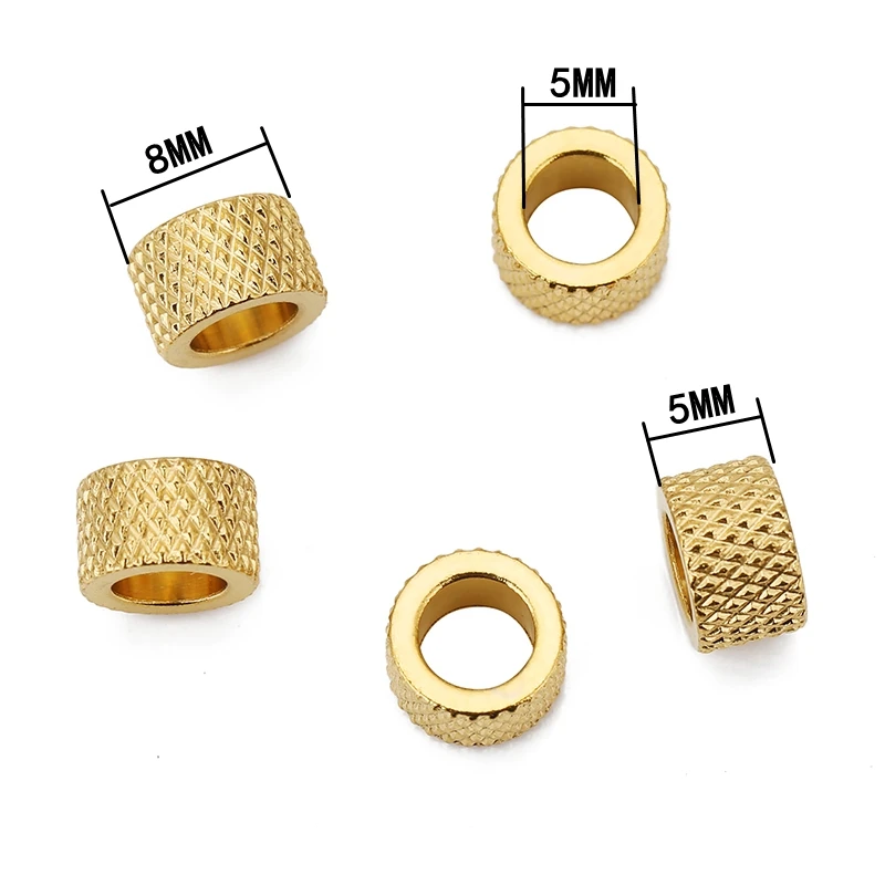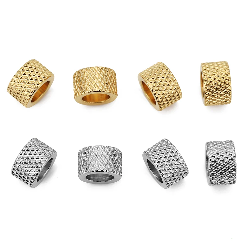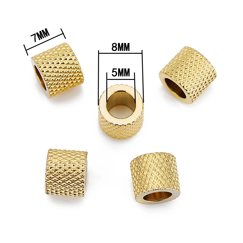 Imagine elevating your jewelry projects with this set of 20 meticulously crafted stainless steel beads. Featuring a textured, round design, these beads add a sophisticated touch to your handmade necklaces and bracelets. Available in sleek steel and rich gold finishes, they boast a polished look, combined with a captivating diamond-patterned surface that provides depth and visual interest. The large 5mm holes ensure easy threading, making your creative process smooth and enjoyable. With precise dimensions of 8x7x5mm and 8x5x5mm, these beads are perfect for adding a stylish metallic accent. Whether you're personalizing accessories or creating gifts, these high-quality beads will inspire confidence in every design.
