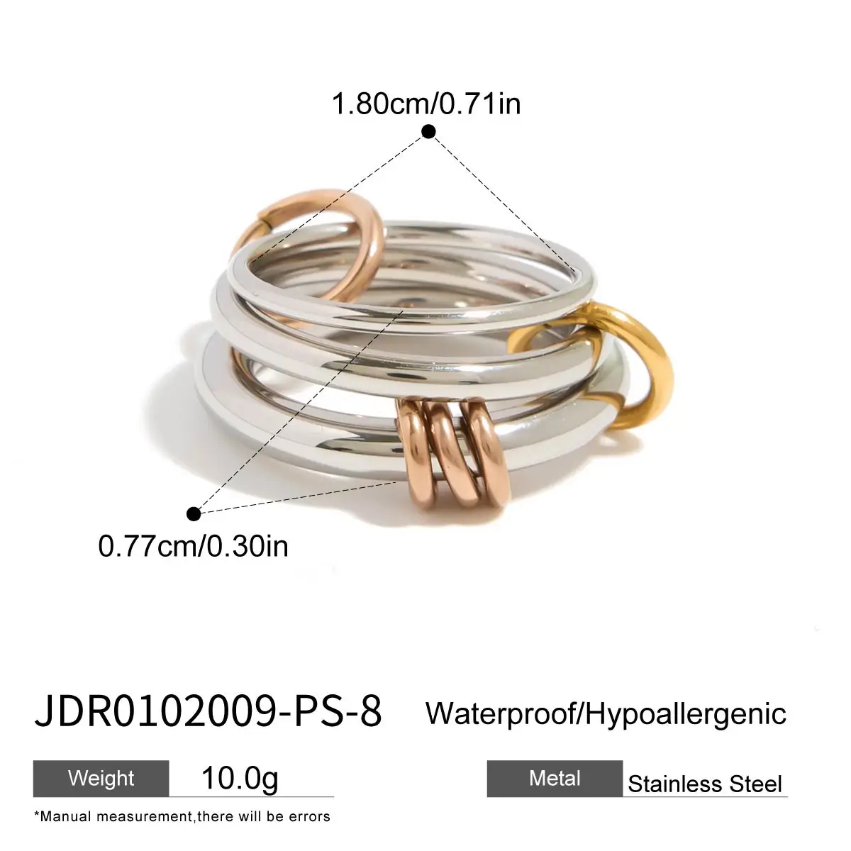 - Features a modern three-layer, round-shaped design with uniform 2mm wide bands, perfect for stacking and creating stylish layered effects.