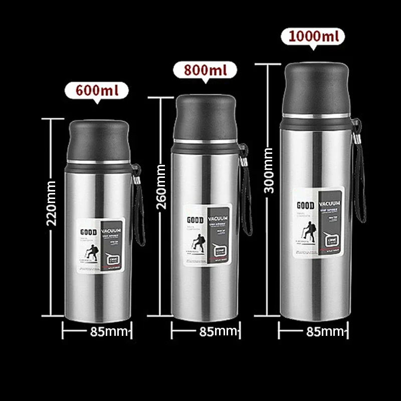 - Available in multiple capacities—600ml (22×8.5cm), 800ml (26×8.5cm), and 1000ml (30×8.5cm)—to suit different needs and scenarios, including sports and travel.
